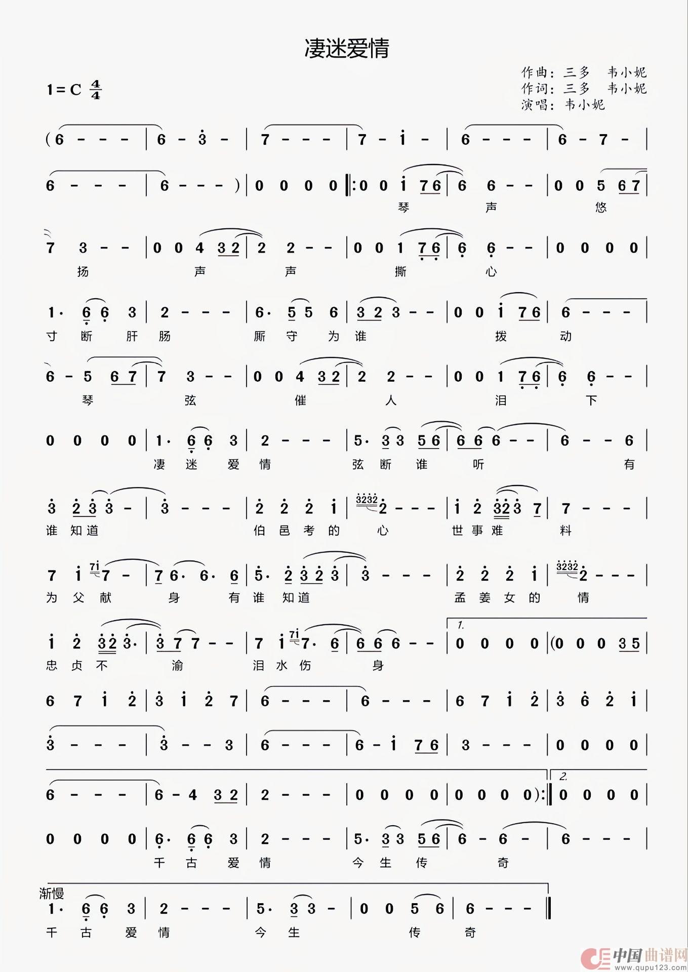 关于《韦小妮《凄迷爱情》》曲谱的评论