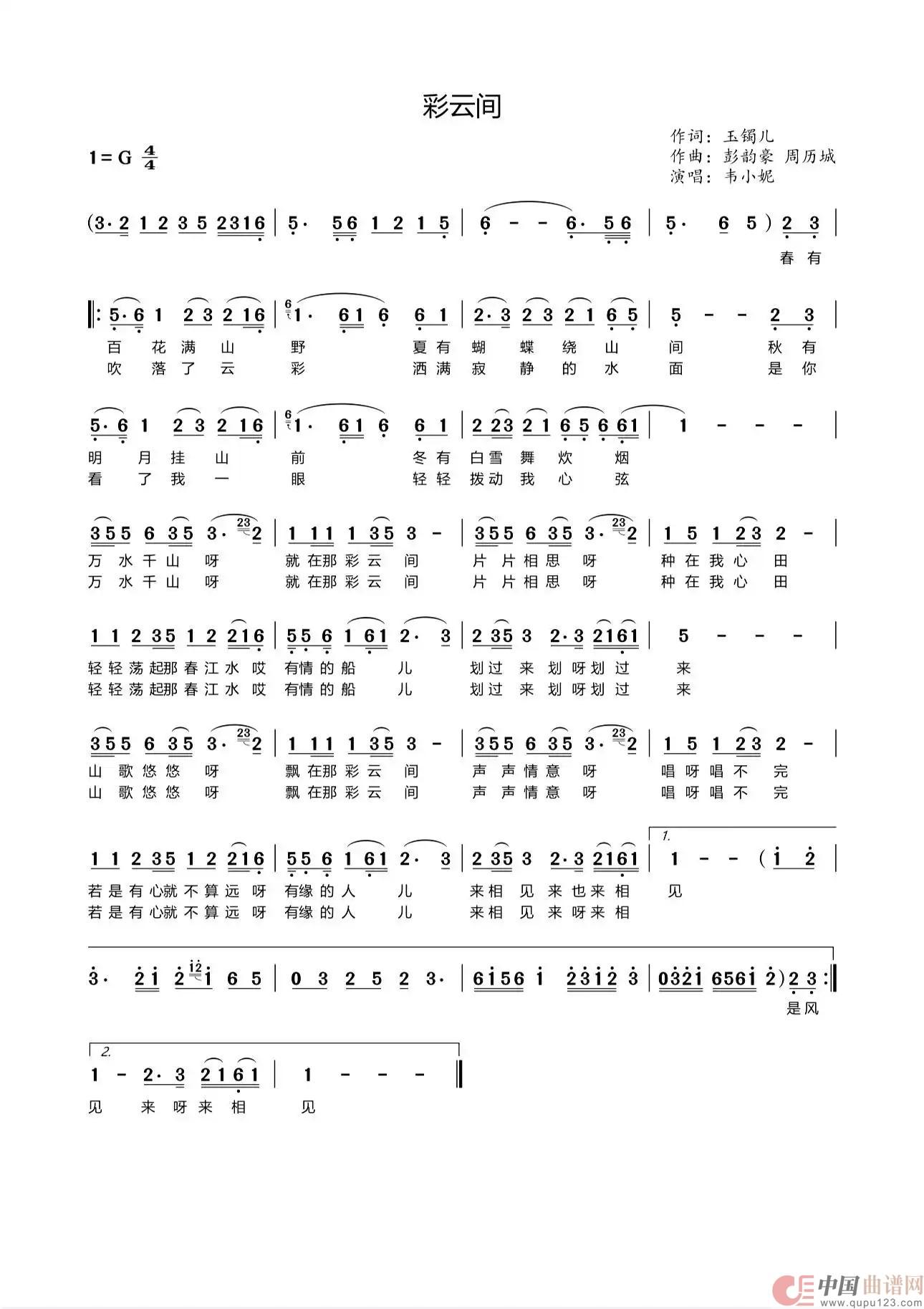 关于《韦小妮《彩云间》》曲谱的评论