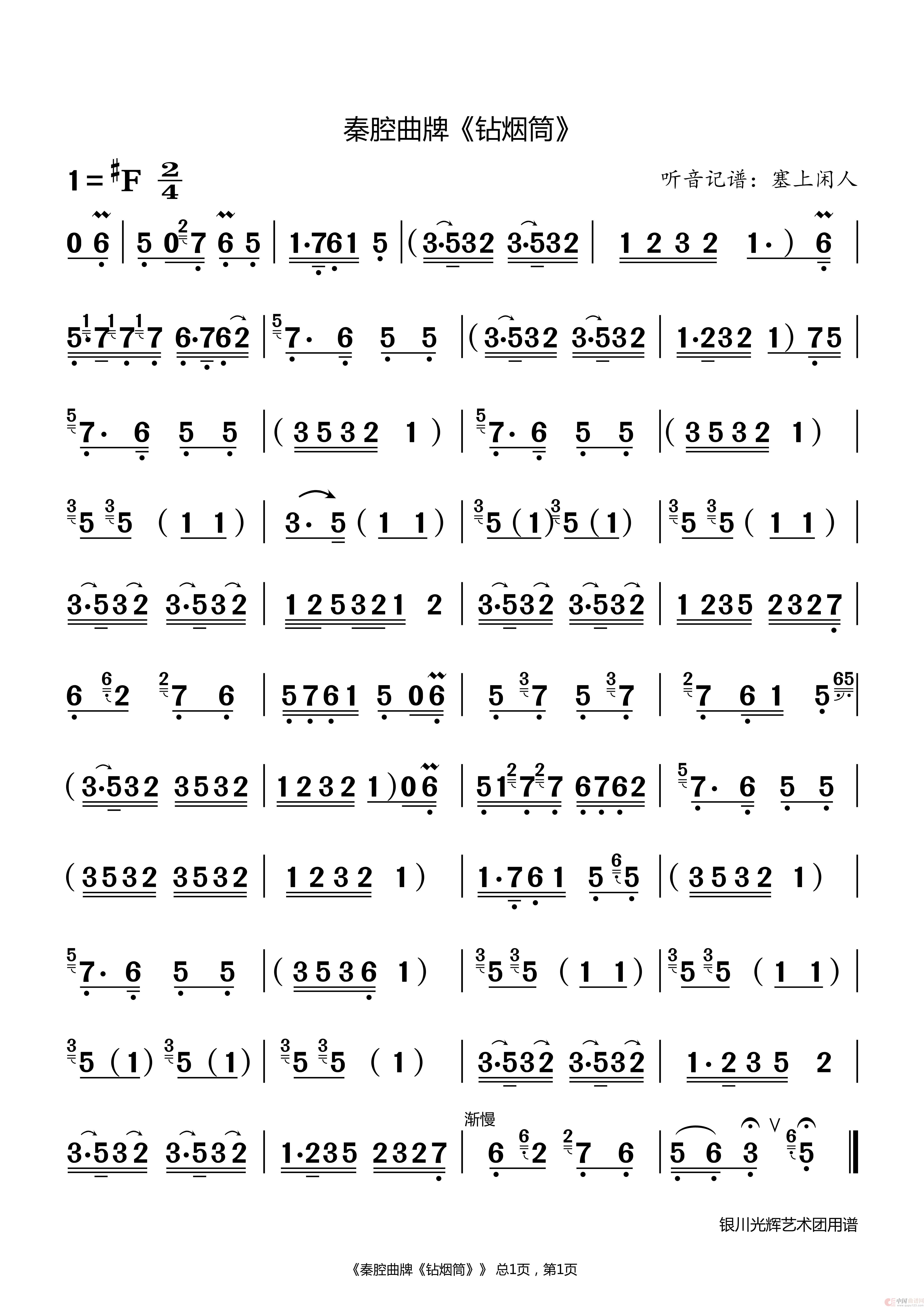 关于《秦腔曲牌《钻烟筒》》曲谱的评论
