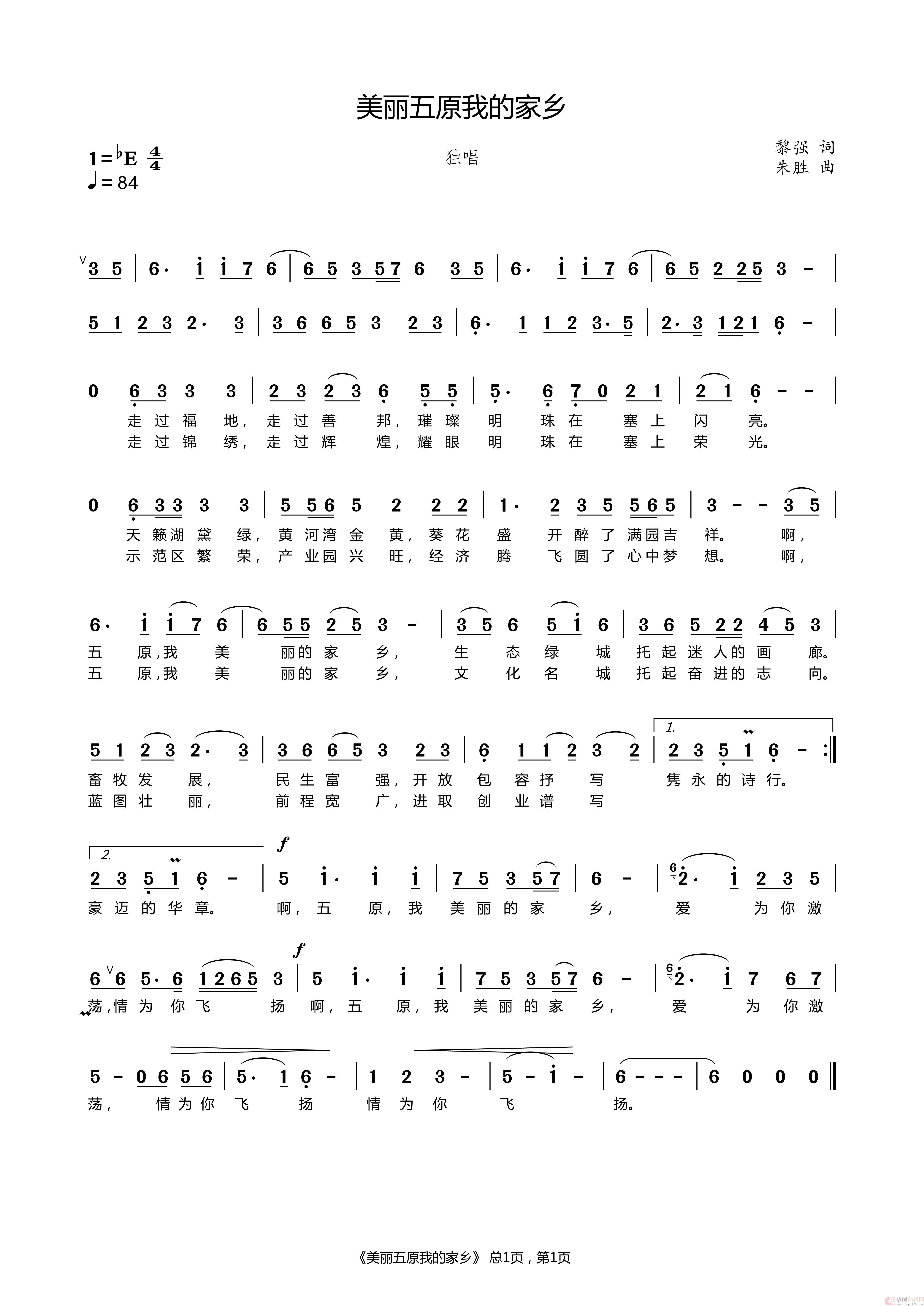 提示:在曲谱图片上单击右键,选择“图片另存为...”即可将曲谱保存到您的电脑中,打印时候可将图片插入到WORD中,调整合适大小打印即可。