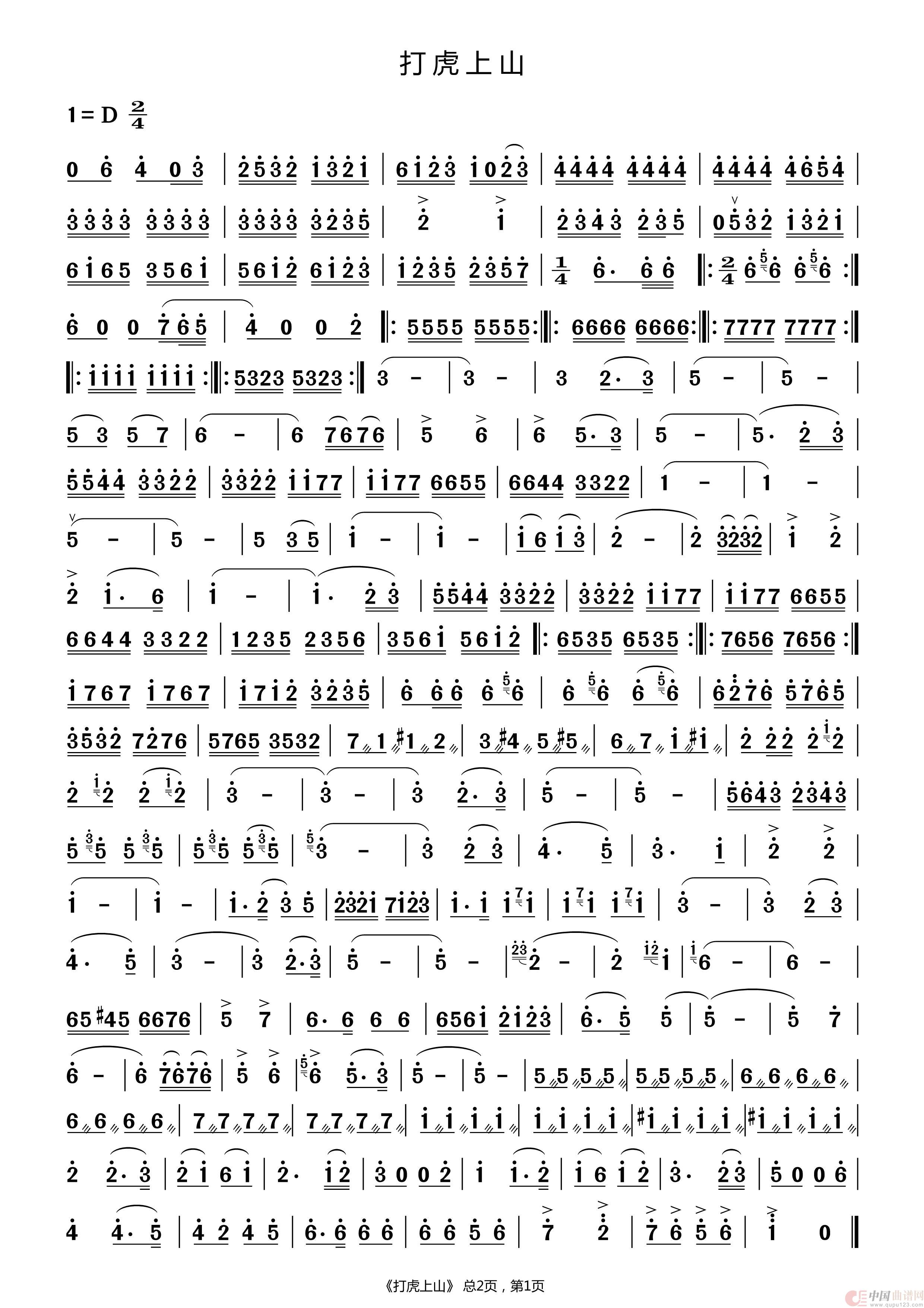 关于《打虎上山》曲谱的评论