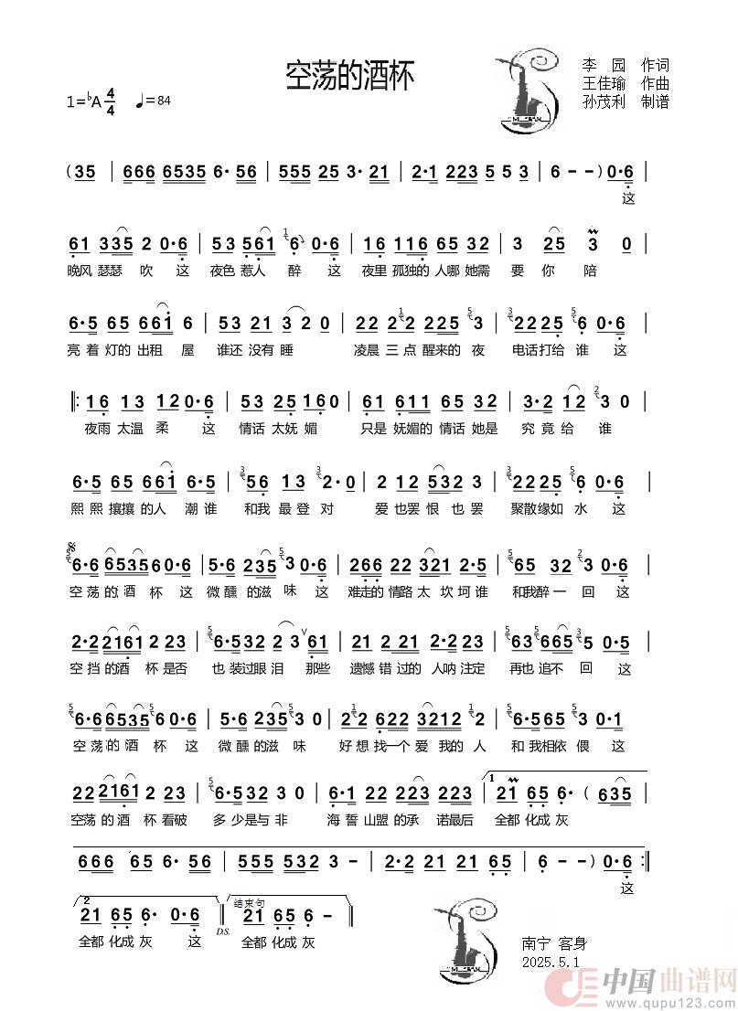 提示:在曲谱图片上单击右键,选择“图片另存为...”即可将曲谱保存到您的电脑中,打印时候可将图片插入到WORD中,调整合适大小打印即可。