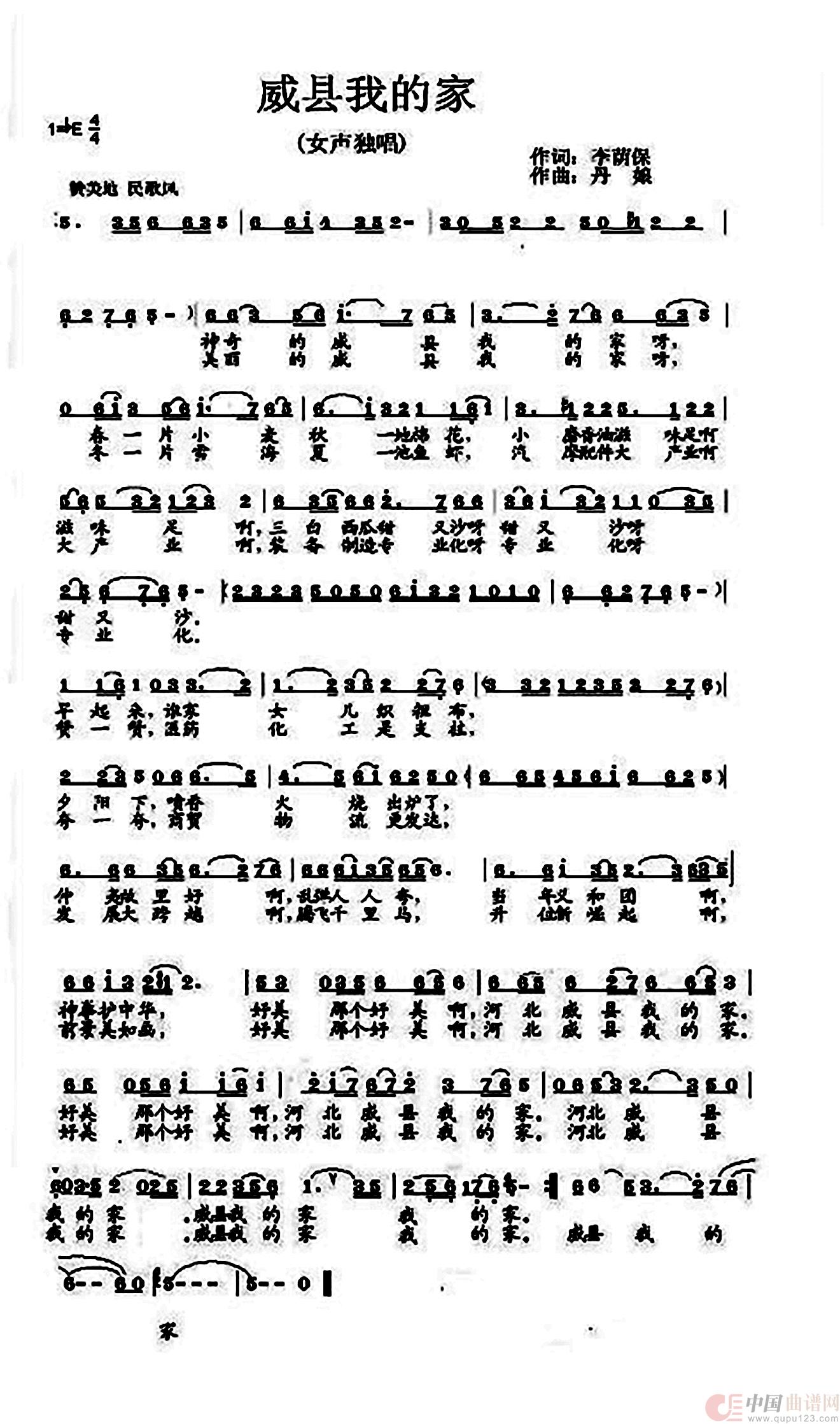 关于《威县我的家》曲谱的评论