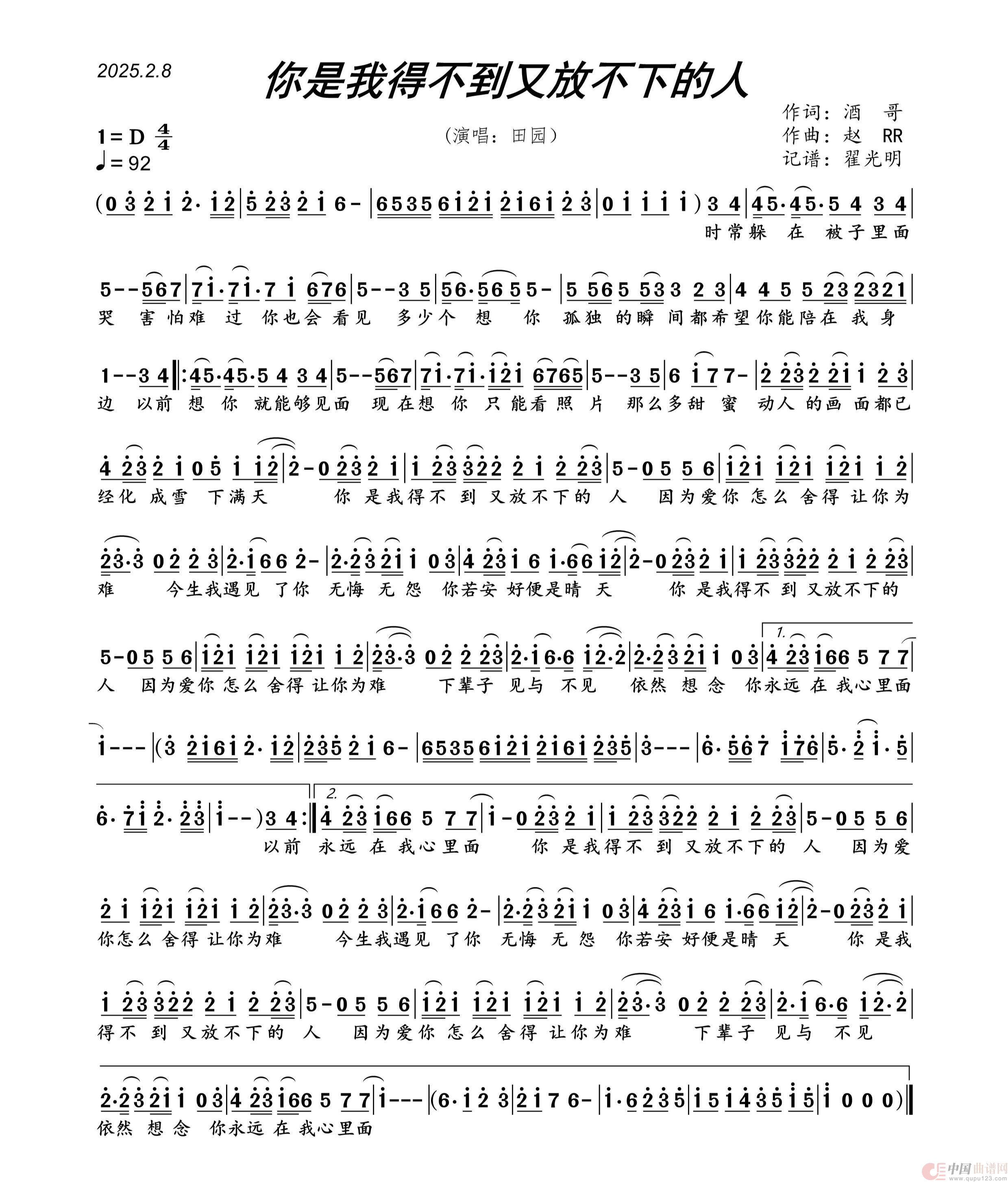 关于《你是我得不到又放不下的人》曲谱的评论