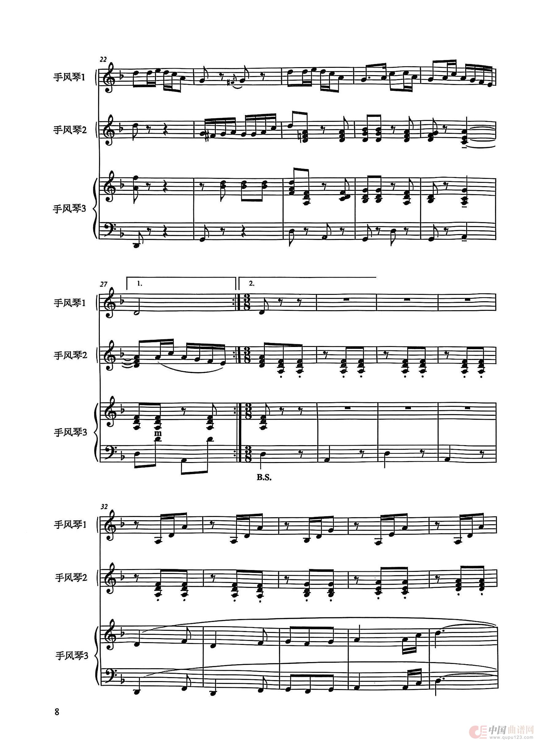 提示:在曲谱图片上单击右键,选择“图片另存为...”即可将曲谱保存到您的电脑中,打印时候可将图片插入到WORD中,调整合适大小打印即可。