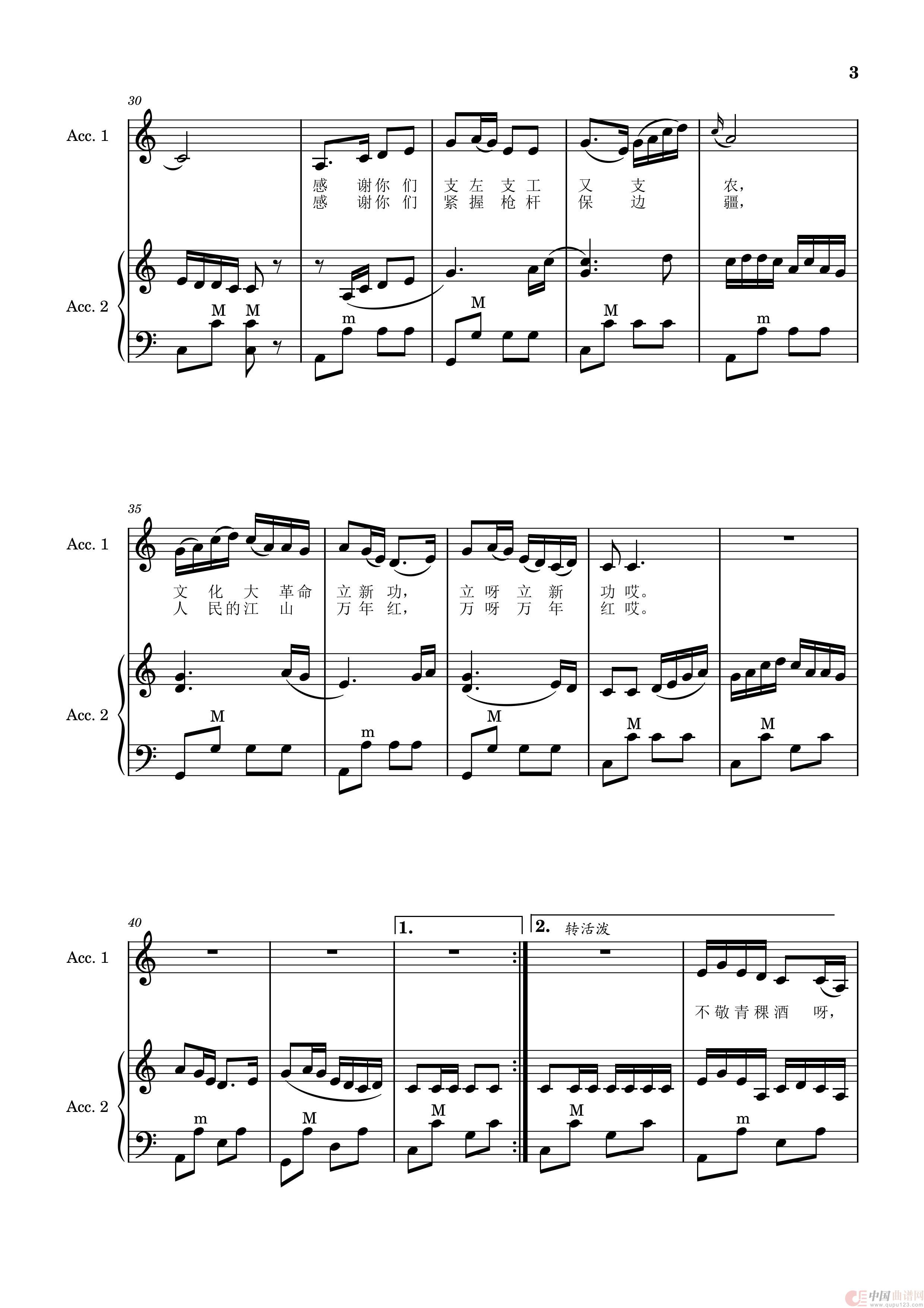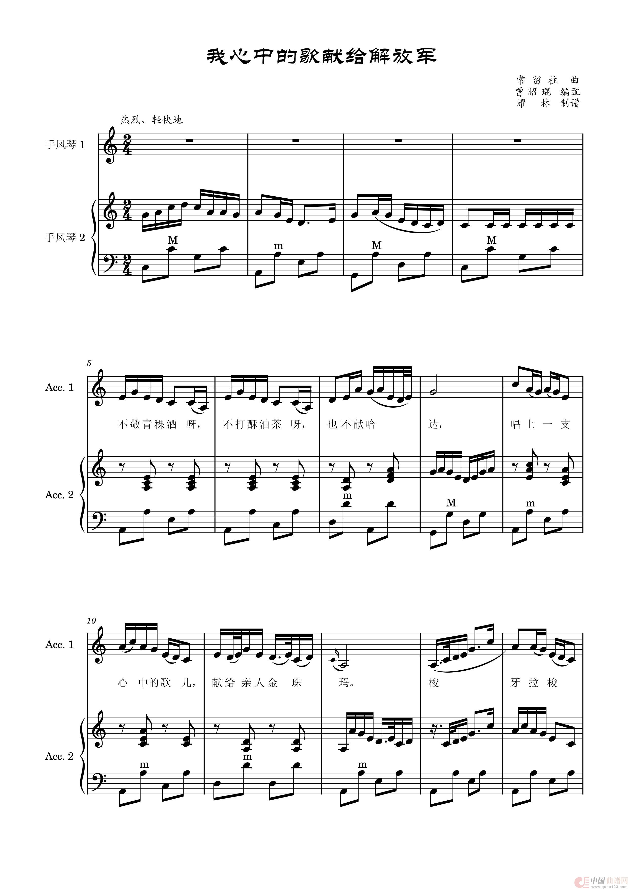 我心中的歌献给解放军(手风琴五线谱)