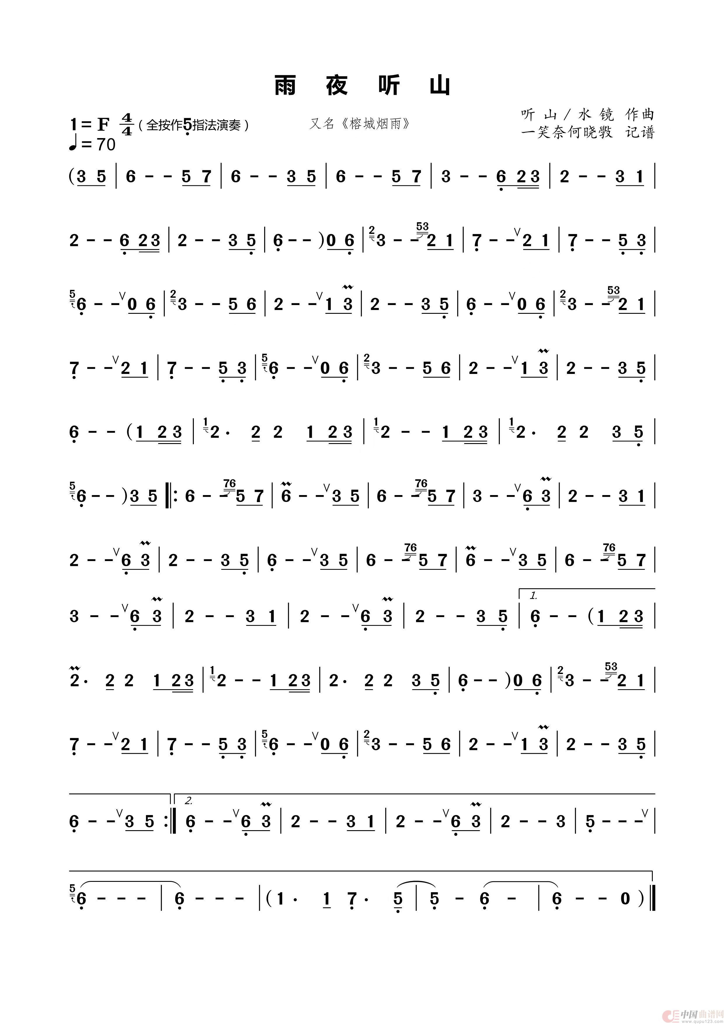 关于《雨夜听山》曲谱的评论