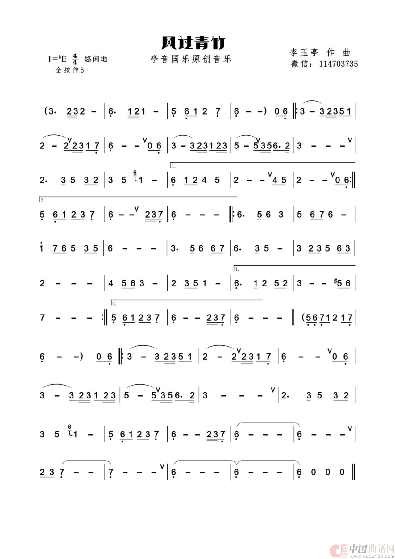 关于《风过青竹》曲谱的评论