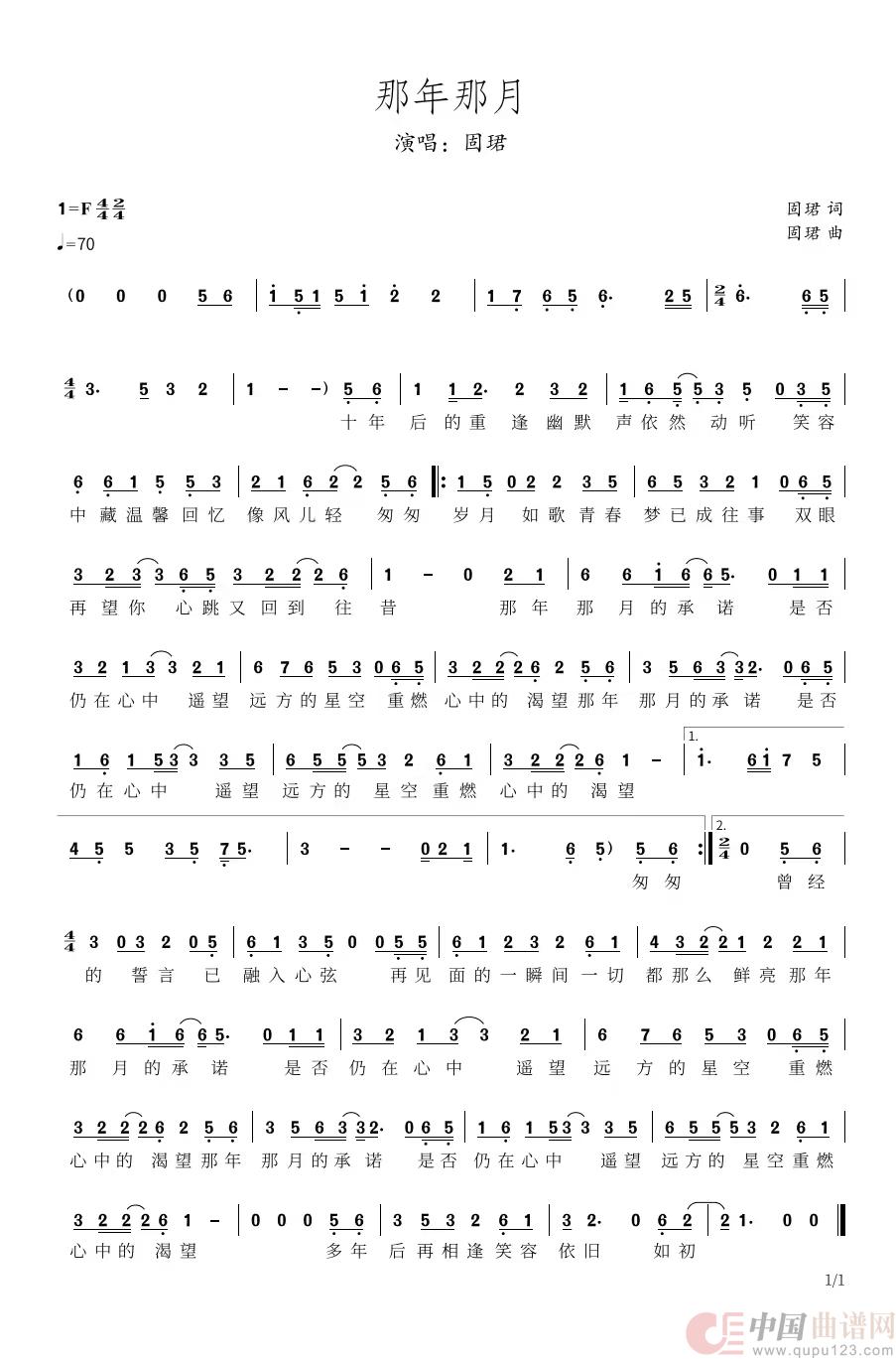 固珺-那年那月-简谱