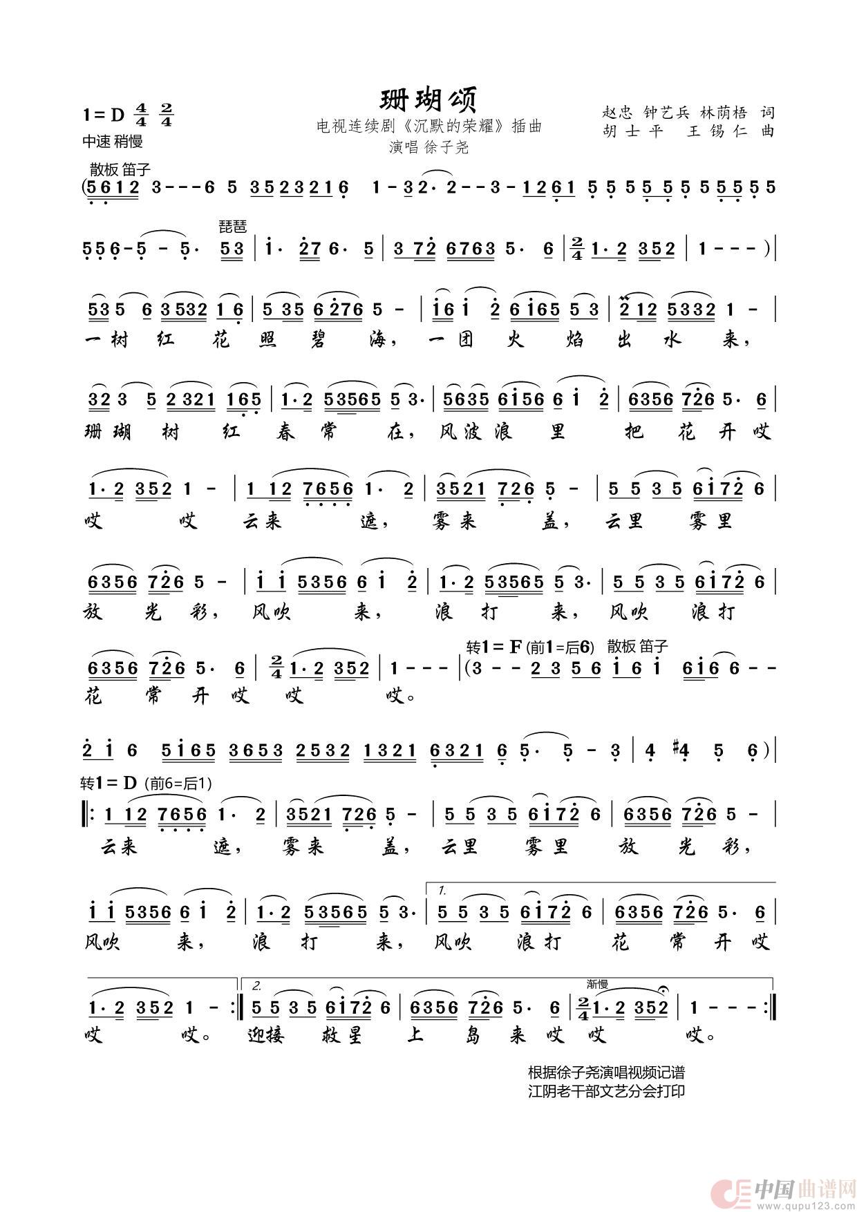 关于《珊瑚颂》曲谱的评论