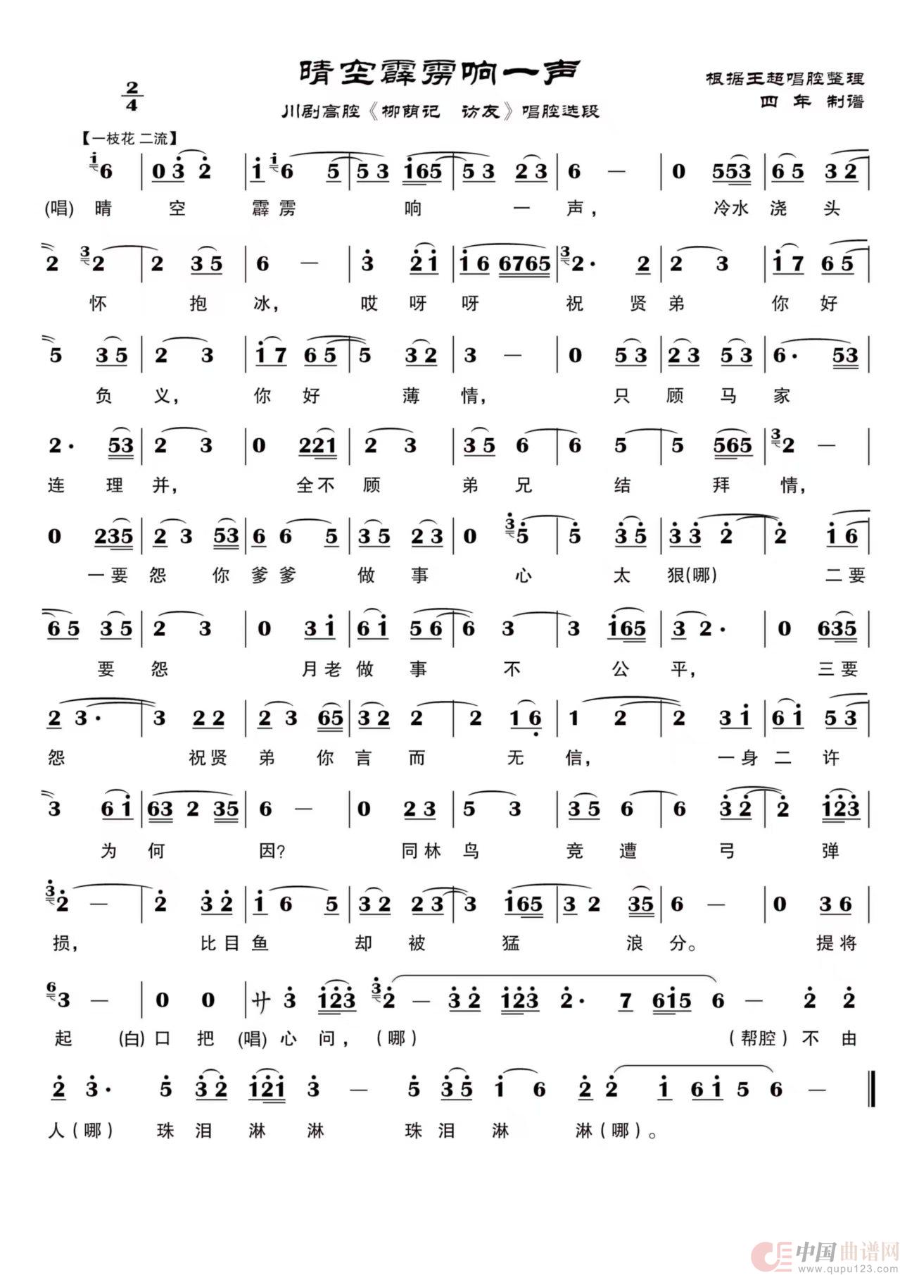关于《晴天霹雳响一声(访友)》曲谱的评论