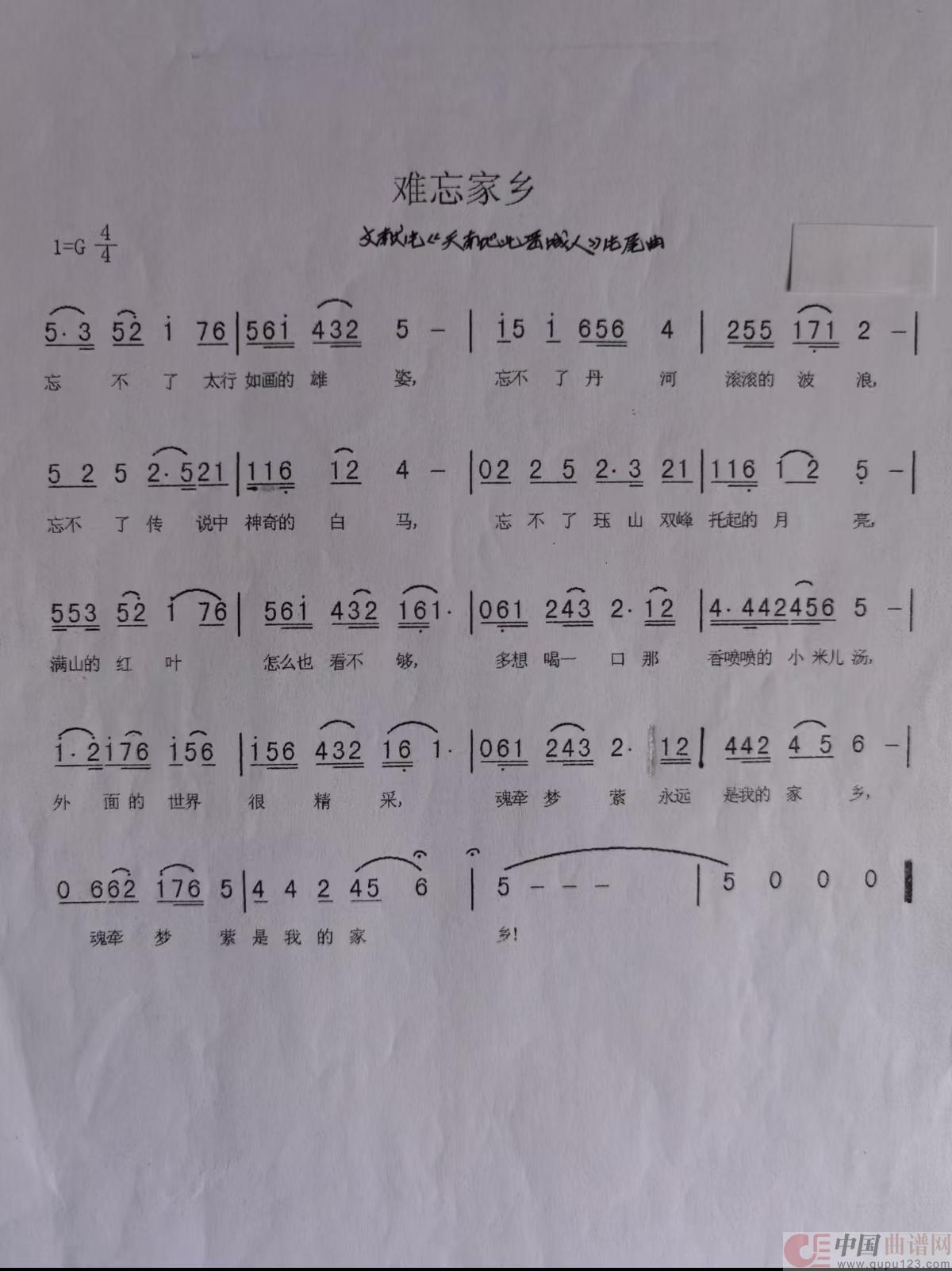 关于《难忘家乡》曲谱的评论