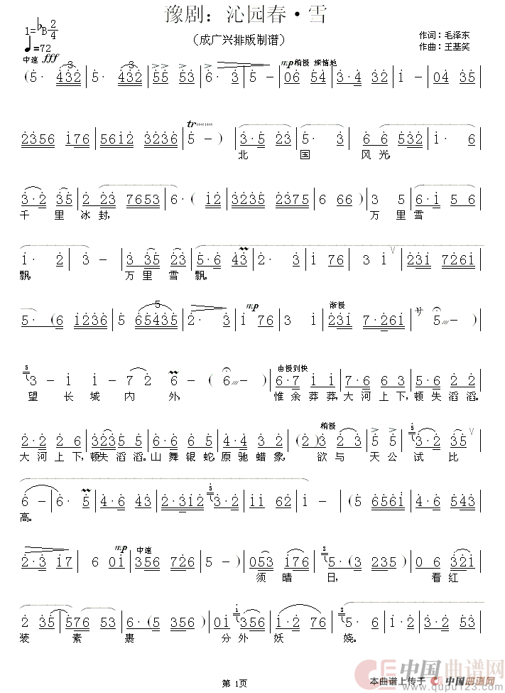 关于《沁园春 雪 豫剧戏歌》曲谱的评论