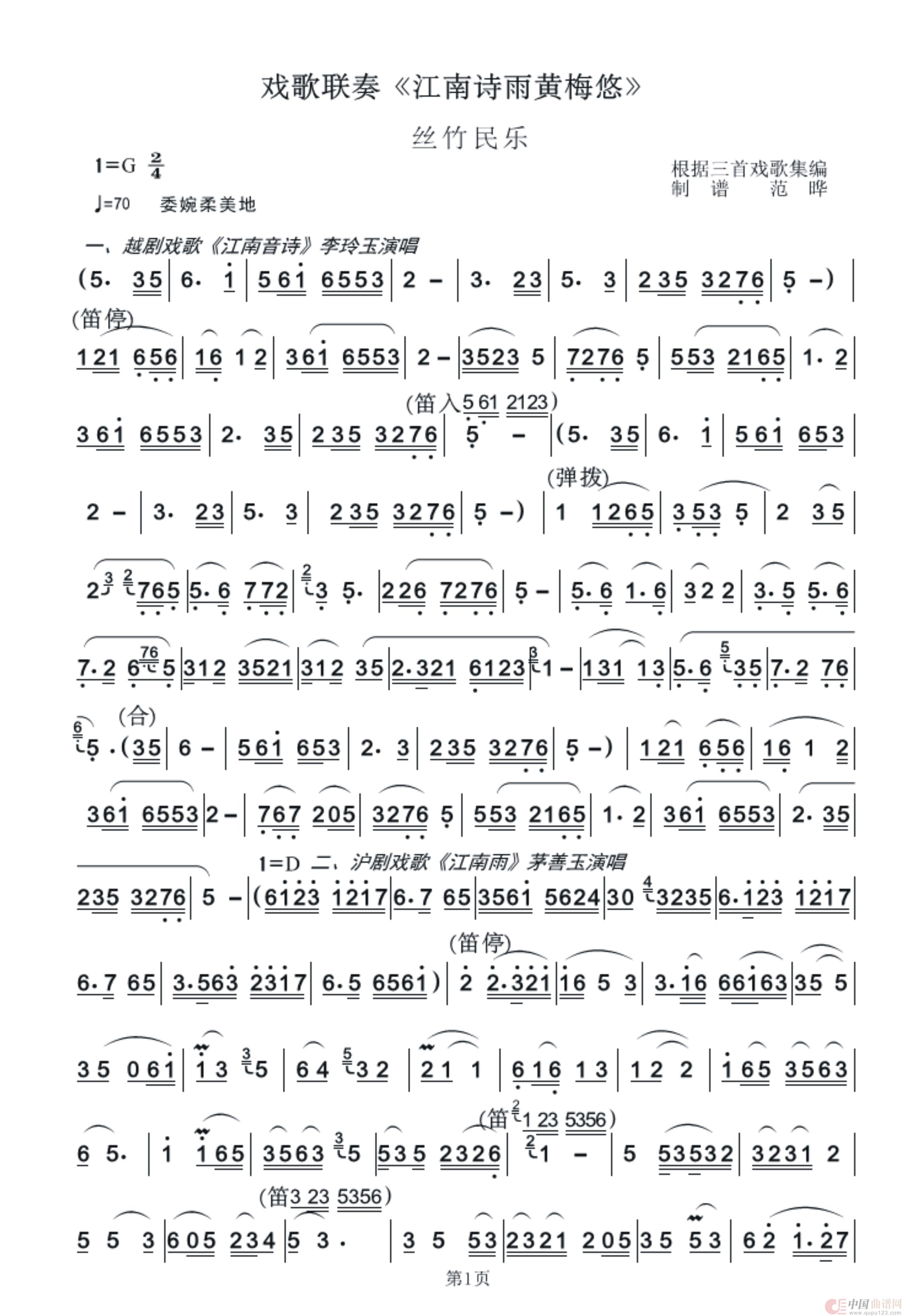 关于《戏歌联奏《江南诗雨黄梅悠》》曲谱的评论
