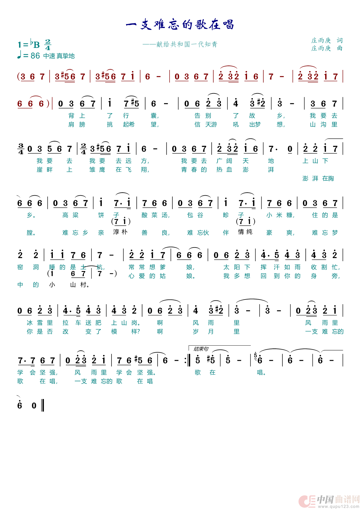 一支难忘的歌在唱(1)_原文件名:6. bB调 一支难忘的歌在唱 庄雨庚作品.png