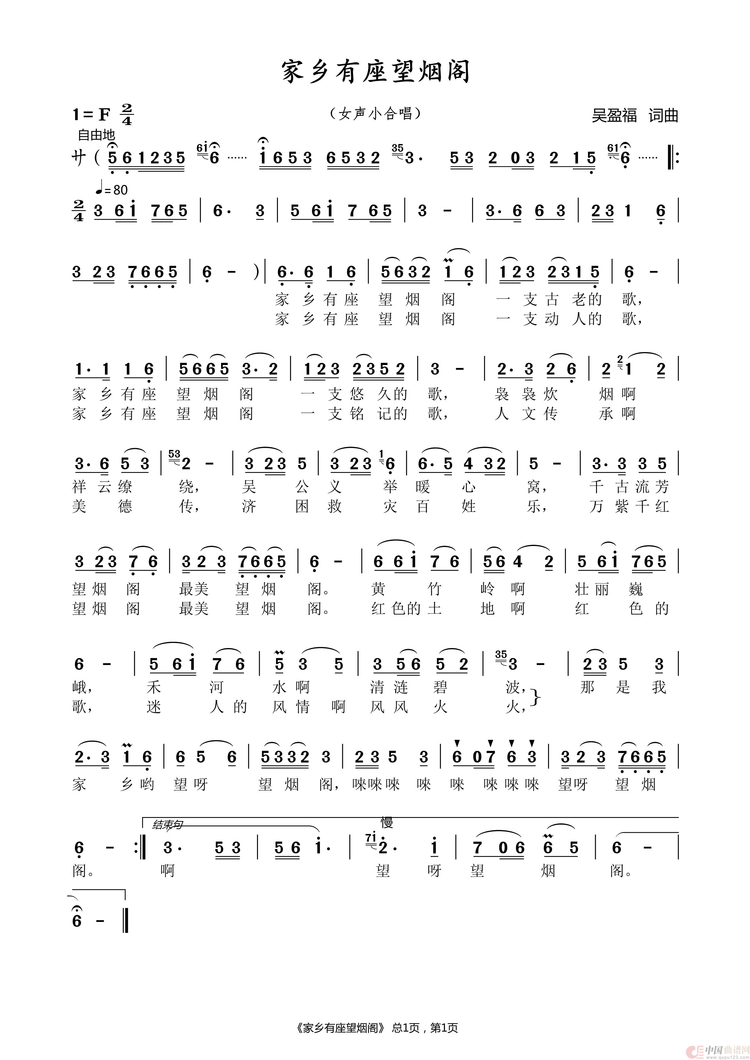 关于《家乡有座望烟阁》曲谱的评论