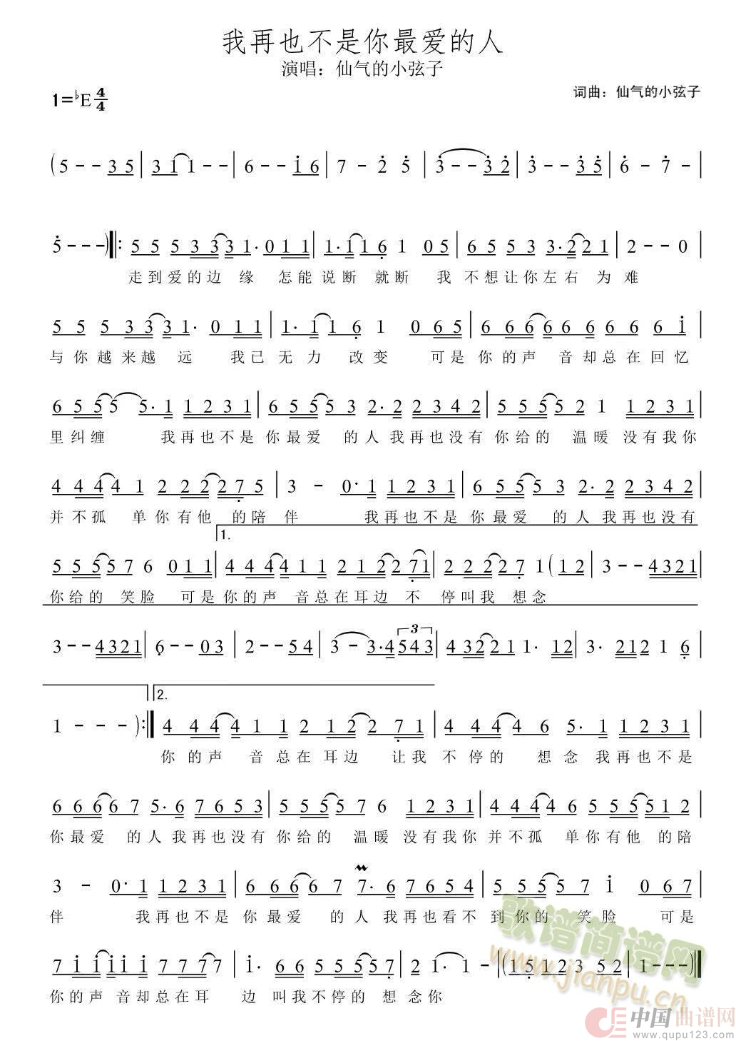 作词:仙气的小弦子 作曲:仙气的小弦子 演唱(奏):仙气的小弦子 来源:http://www.jianpu.cn/pu/46/462073.htm 上传:仙气的小弦子