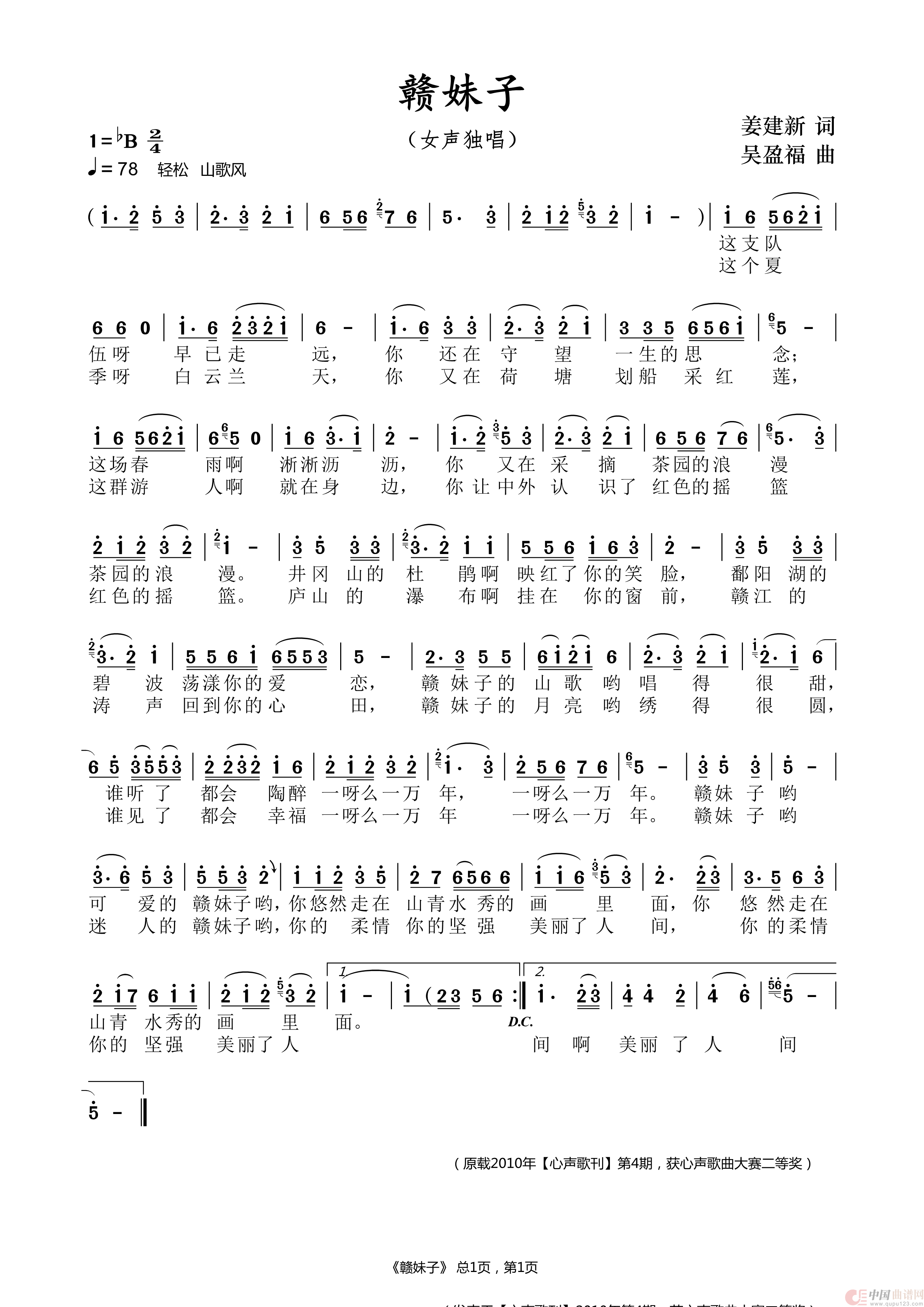 提示:在曲谱图片上单击右键,选择“图片另存为...”即可将曲谱保存到您的电脑中,打印时候可将图片插入到WORD中,调整合适大小打印即可。