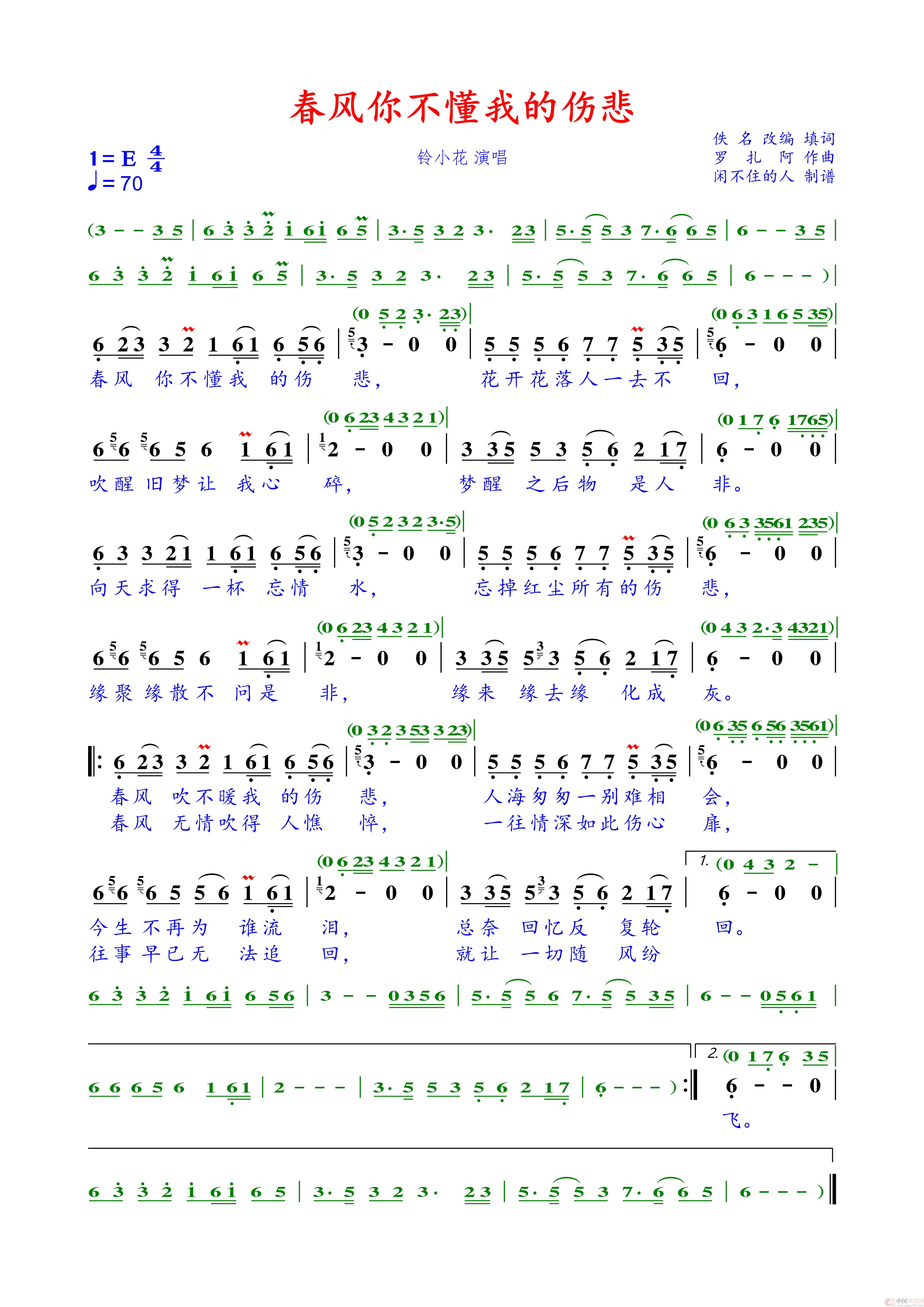 关于《春风你不懂我的伤悲》曲谱的评论