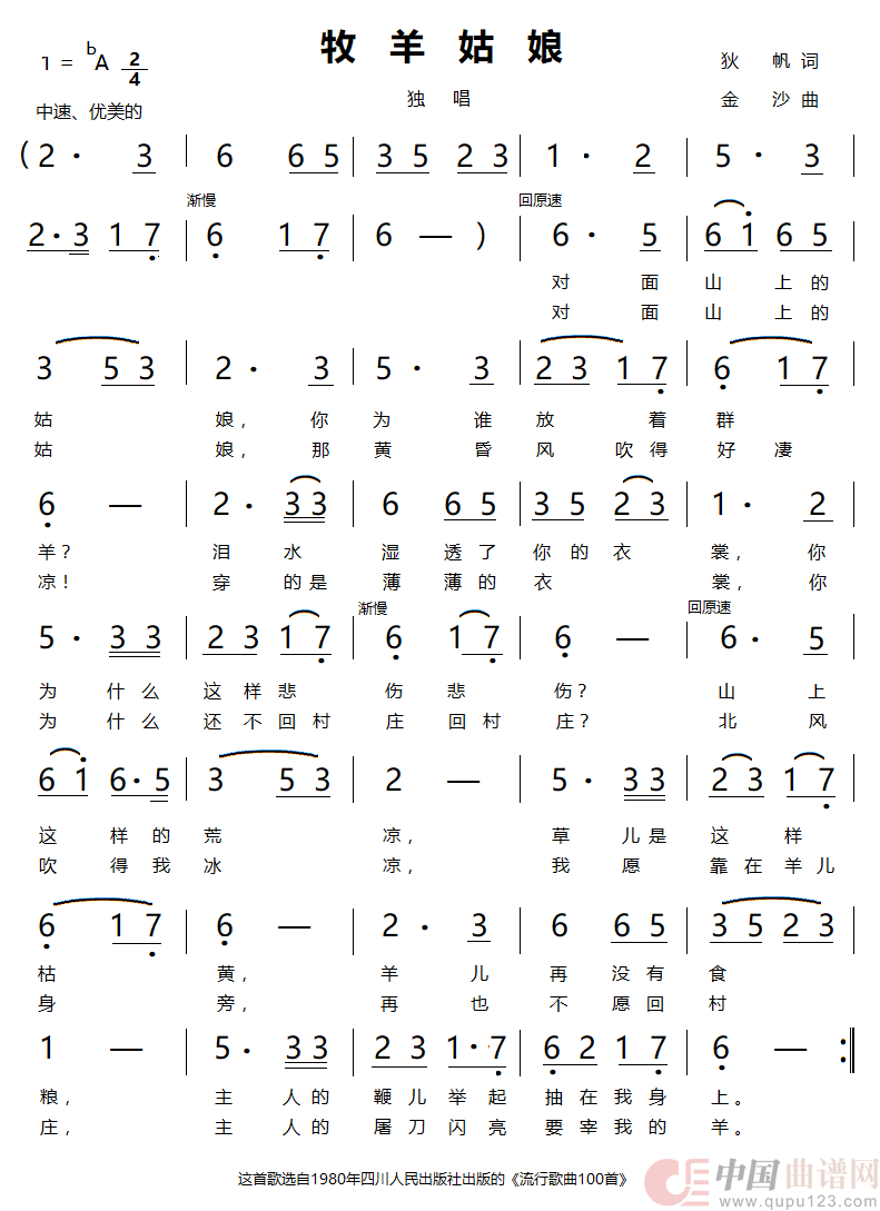 关于《牧羊姑娘》曲谱的评论