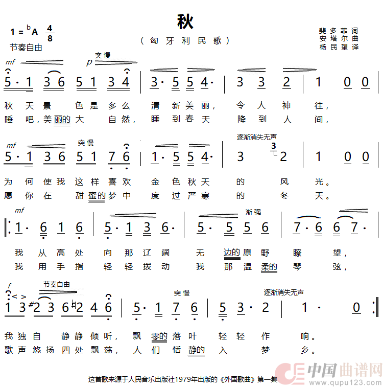 作词:斐多菲 作曲:安塔尔 来源:人民音乐出版社外国歌曲第一集 上传:池水清澈