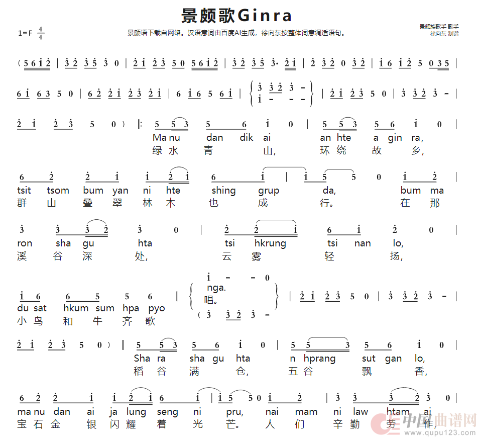 《景颇歌Ginra(徐向东整理景汉双语歌词)》文本歌词