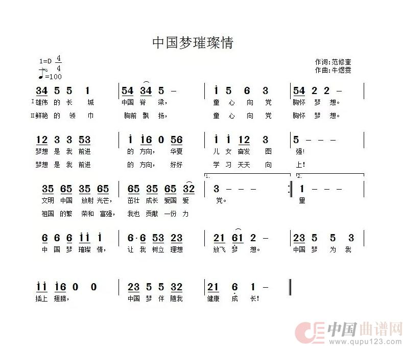 关于《中国梦璀璨情》曲谱的评论