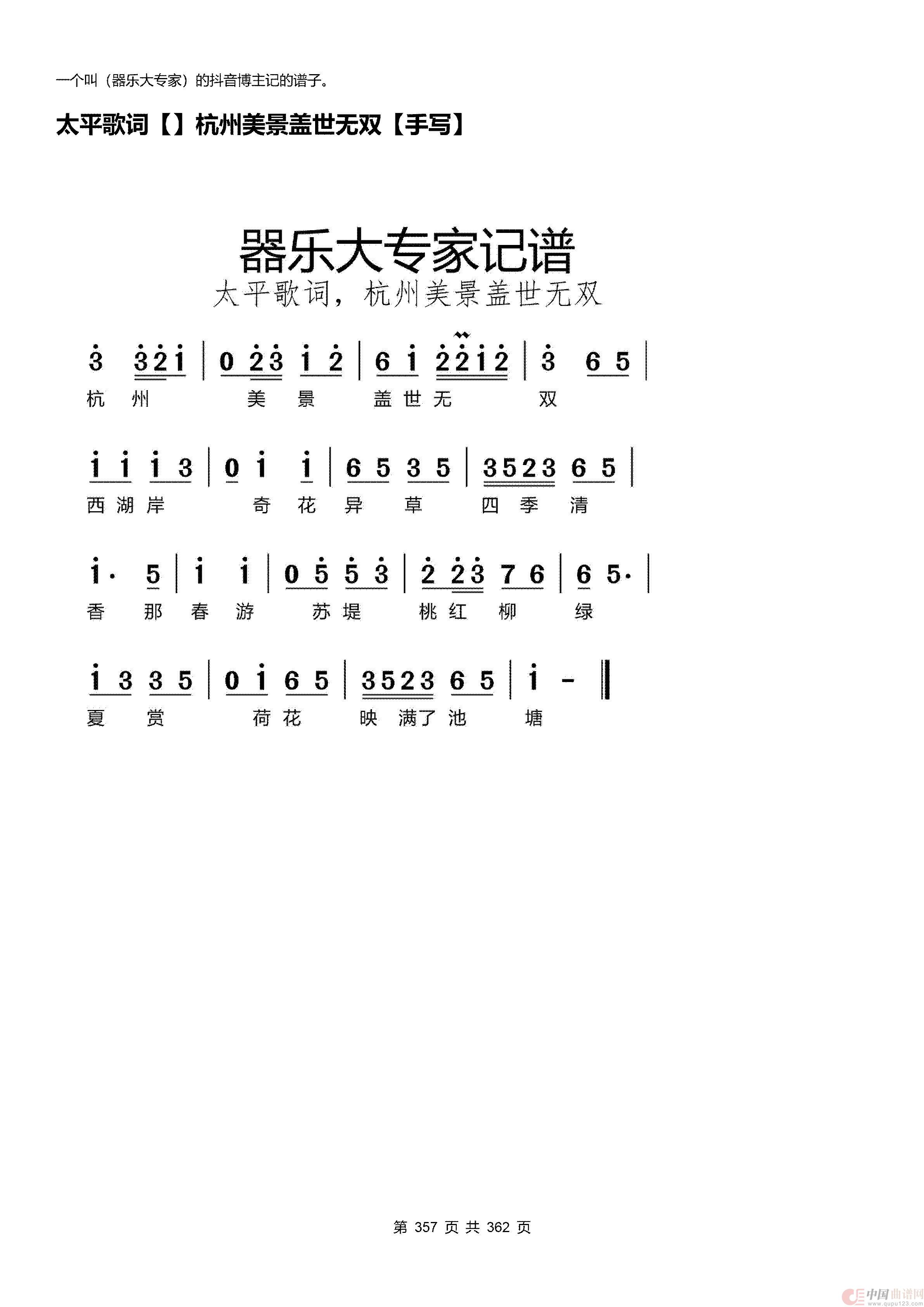 关于《太平歌词 杭州美景盖世无双》曲谱的评论