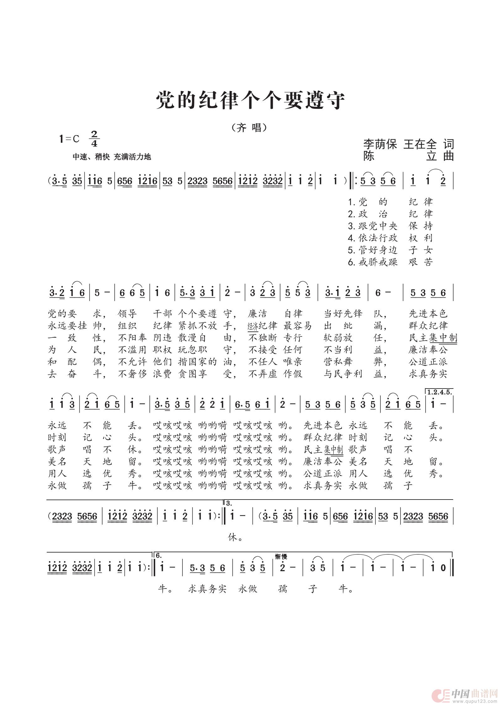 关于《党的纪律个个要牢记》曲谱的评论
