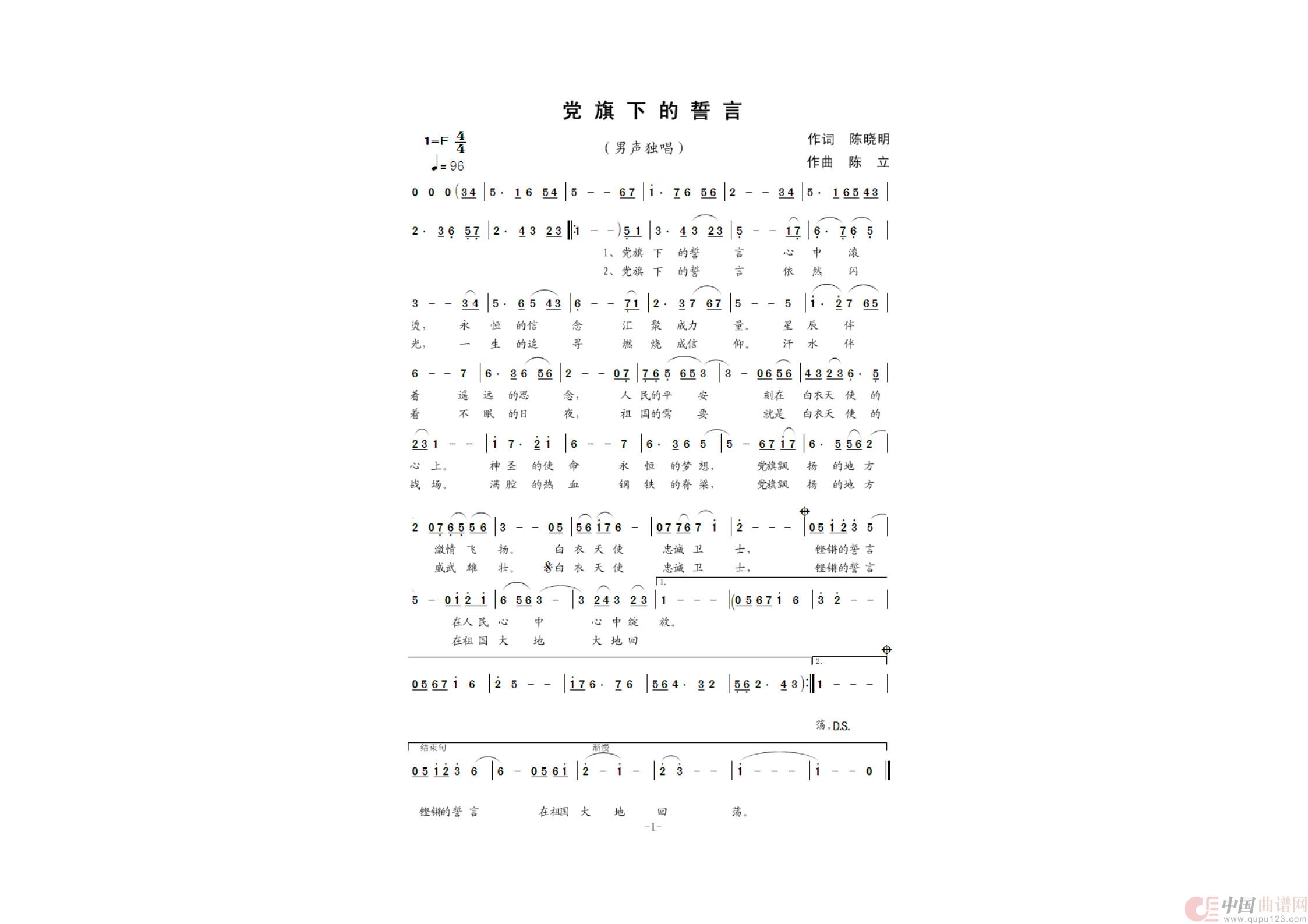 关于《党旗下的誓言》曲谱的评论