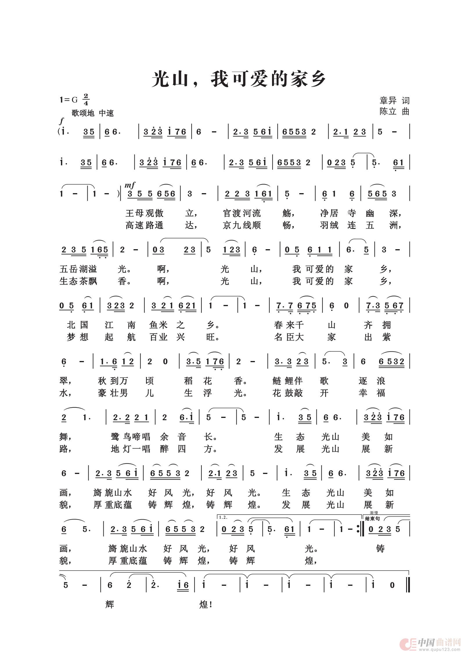 关于《光山 我可爱的家乡》曲谱的评论