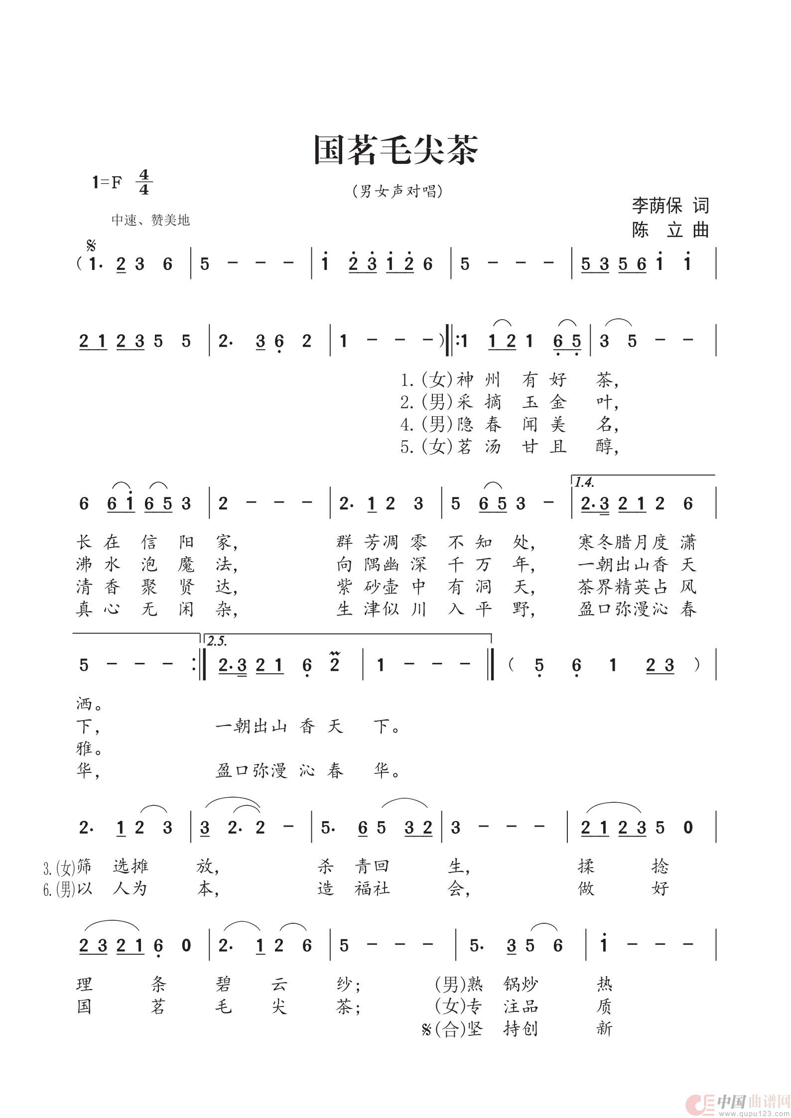 关于《国茗毛尖茶》曲谱的评论