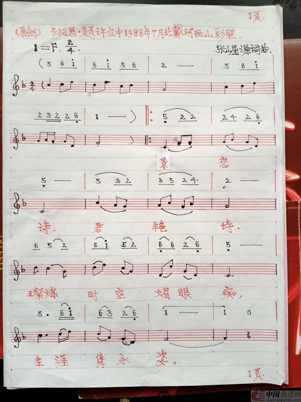 关于《长相思·题许立中1988年7月北戴河西山彩照》曲谱的评论