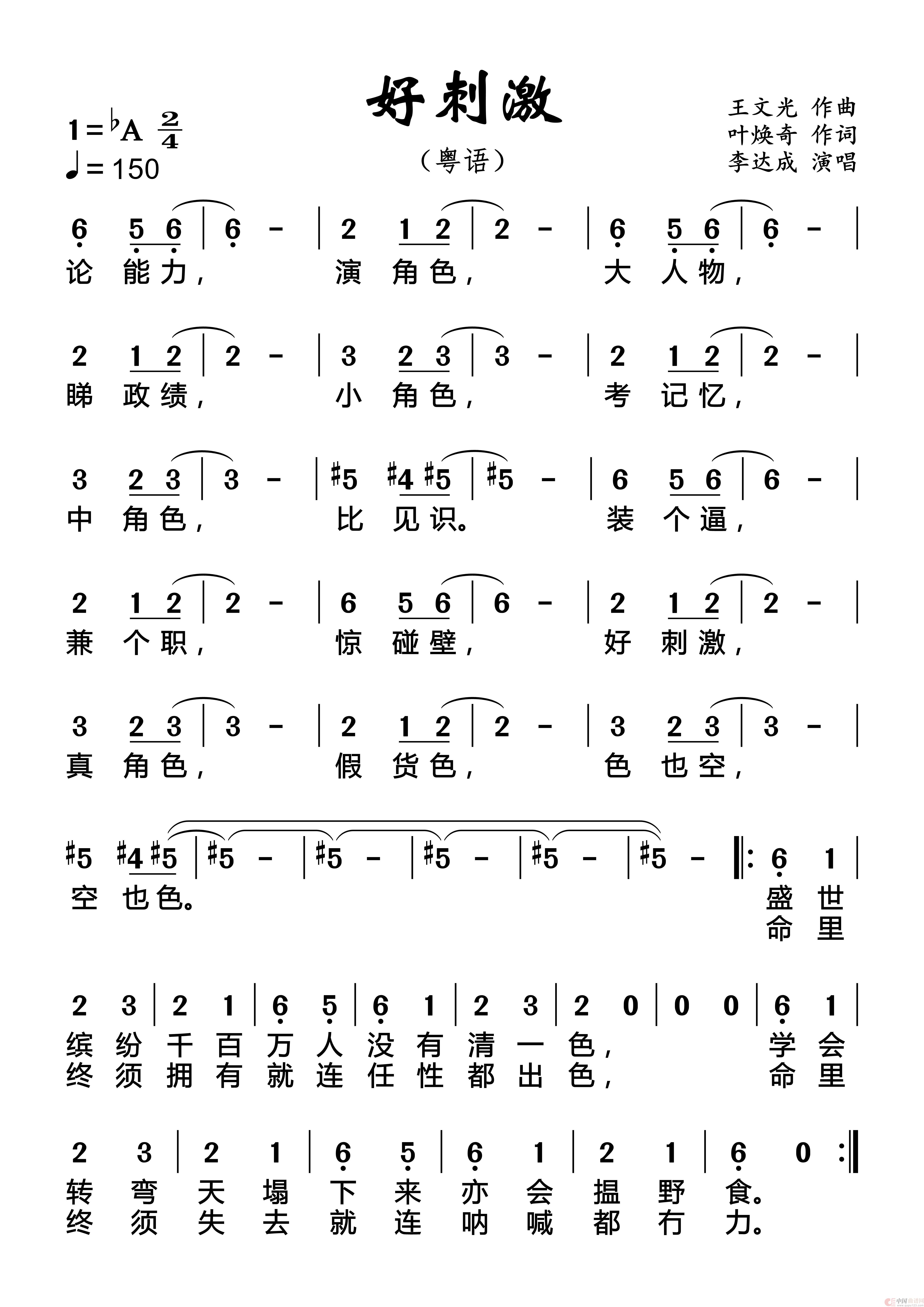 关于《好刺激》曲谱的评论