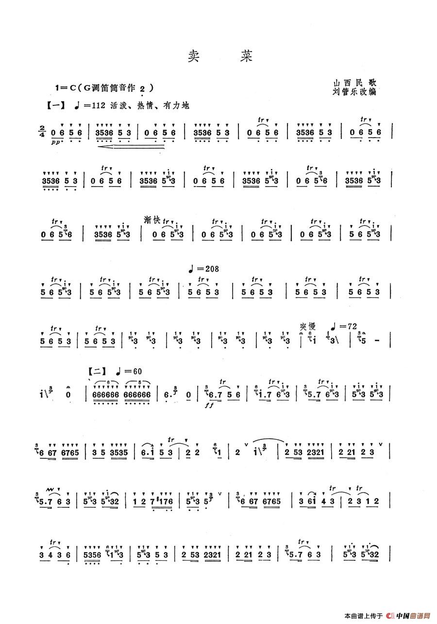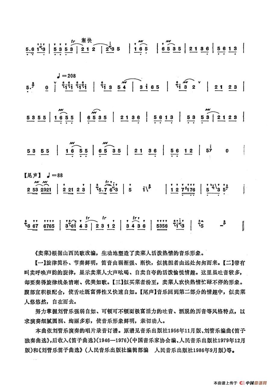 关于《卖菜》曲谱的评论