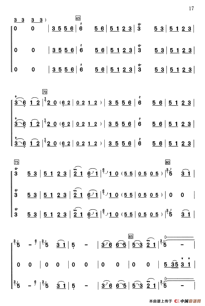 提示:在曲谱图片上单击右键,选择“图片另存为...”即可将曲谱保存到您的电脑中,打印时候可将图片插入到WORD中,调整合适大小打印即可。