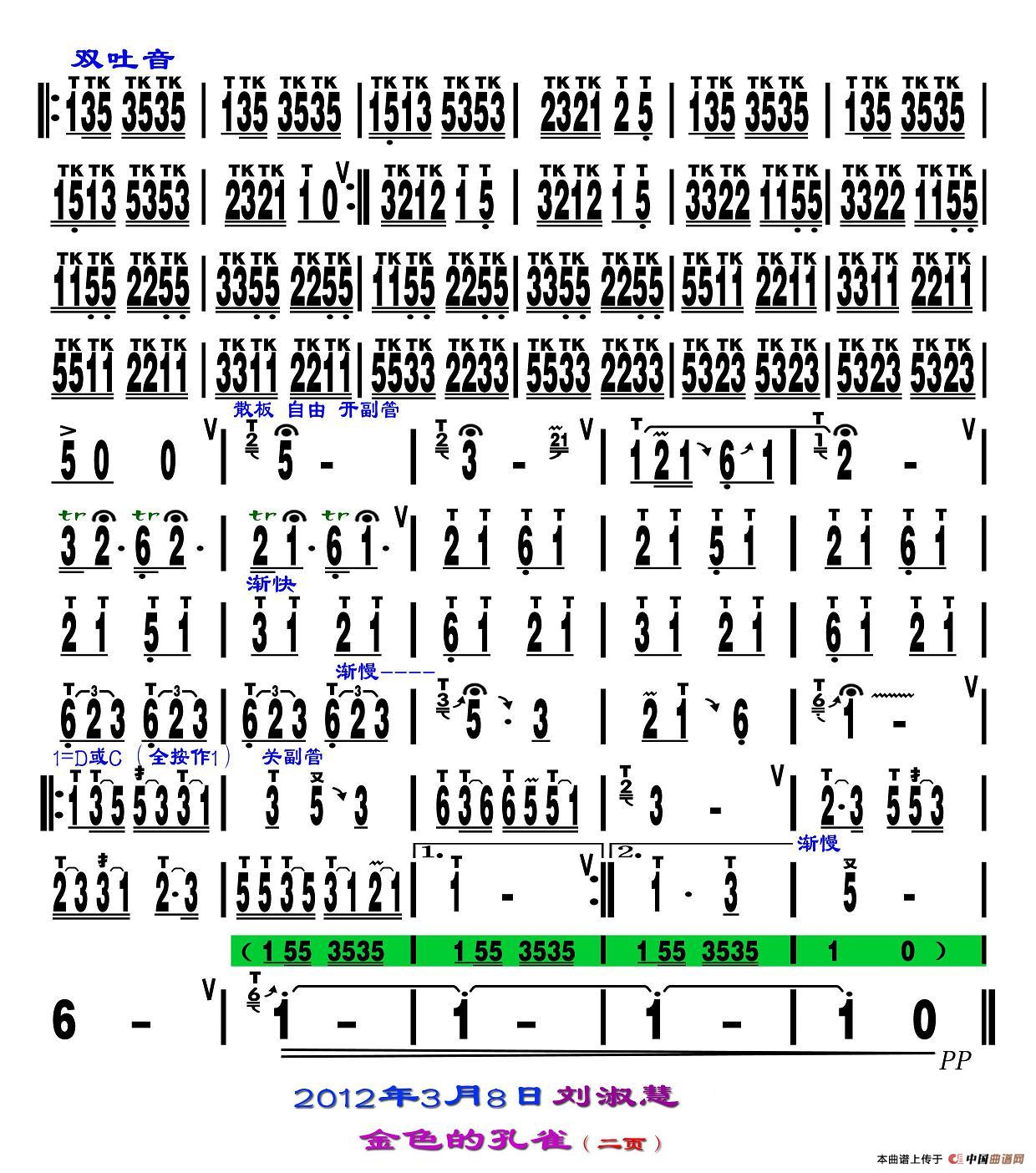 金色的孔雀 (刘慧淑制谱版)