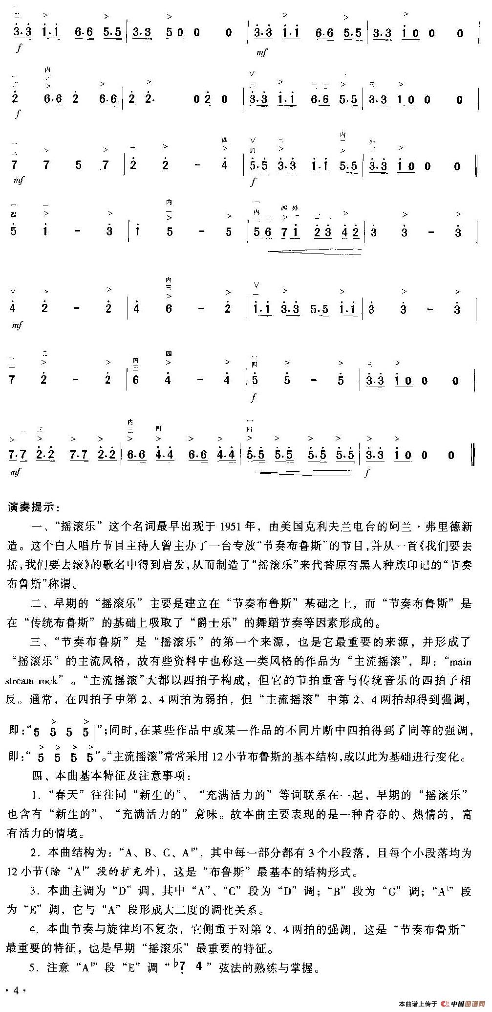 关于《春天的摇滚》曲谱的评论