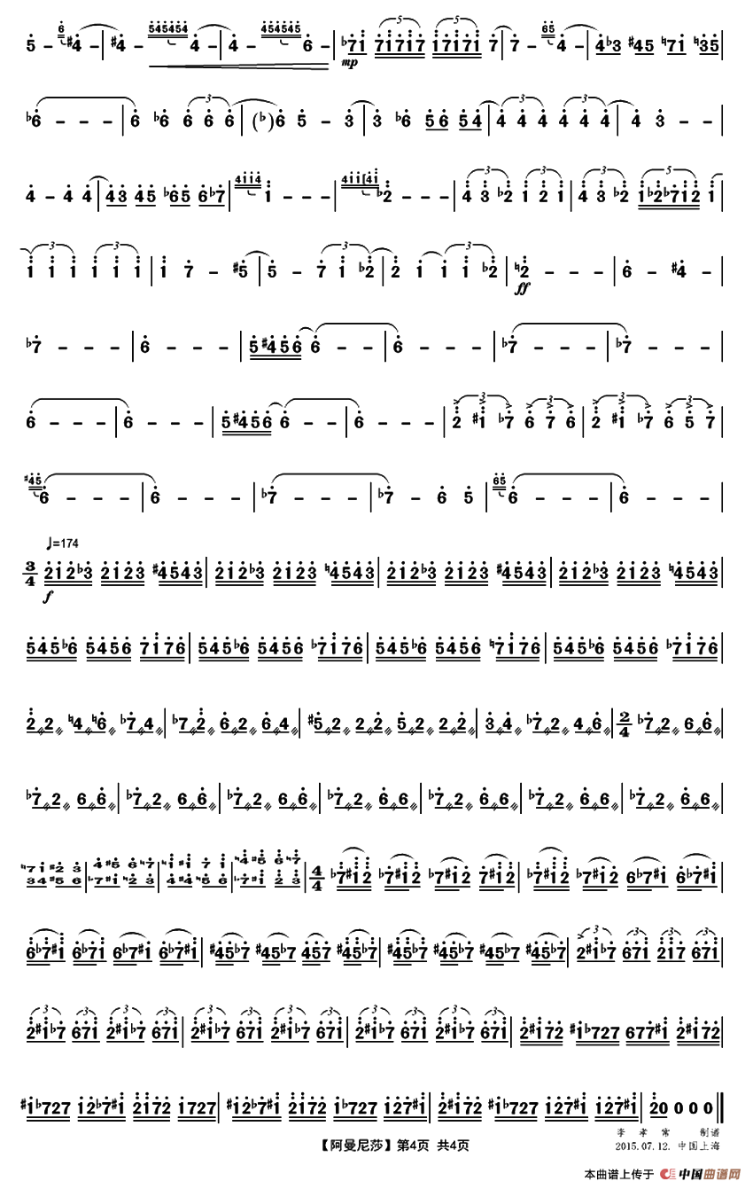 提示:在曲谱图片上单击右键,选择“图片另存为...”即可将曲谱保存到您的电脑中,打印时候可将图片插入到WORD中,调整合适大小打印即可。