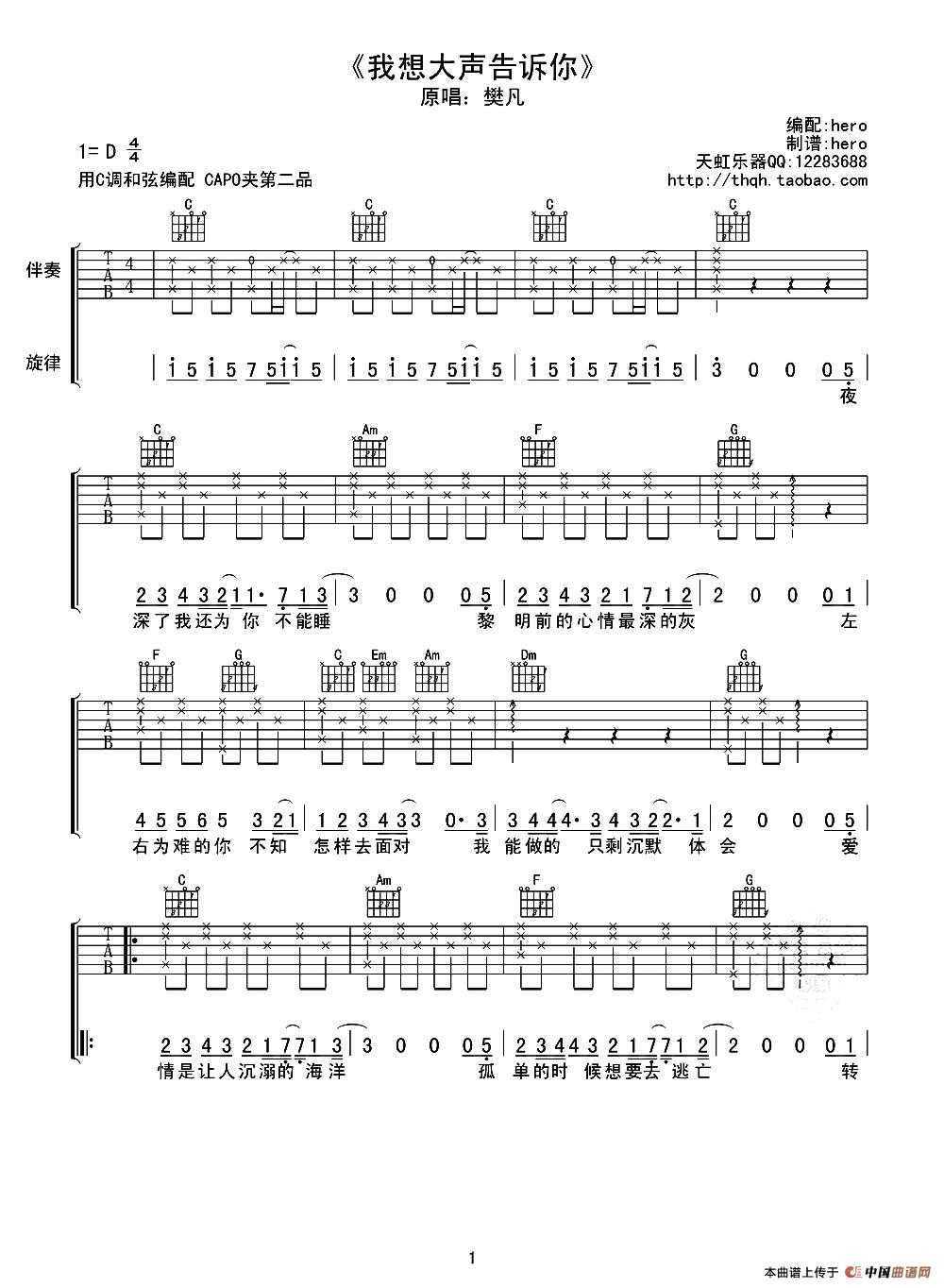 关于《我想大声告诉你》曲谱的评论