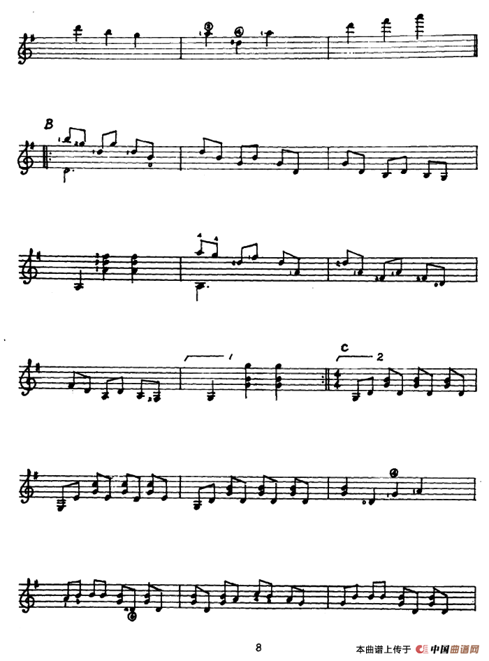 提示:在曲谱图片上单击右键,选择“图片另存为...”即可将曲谱保存到您的电脑中,打印时候可将图片插入到WORD中,调整合适大小打印即可。