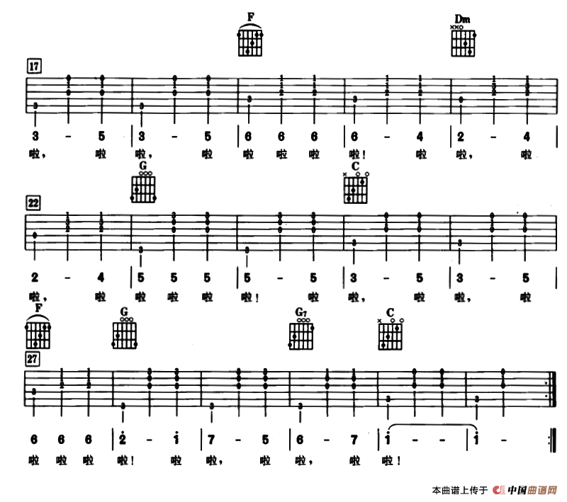 选自《吉他弹唱世界民歌集》