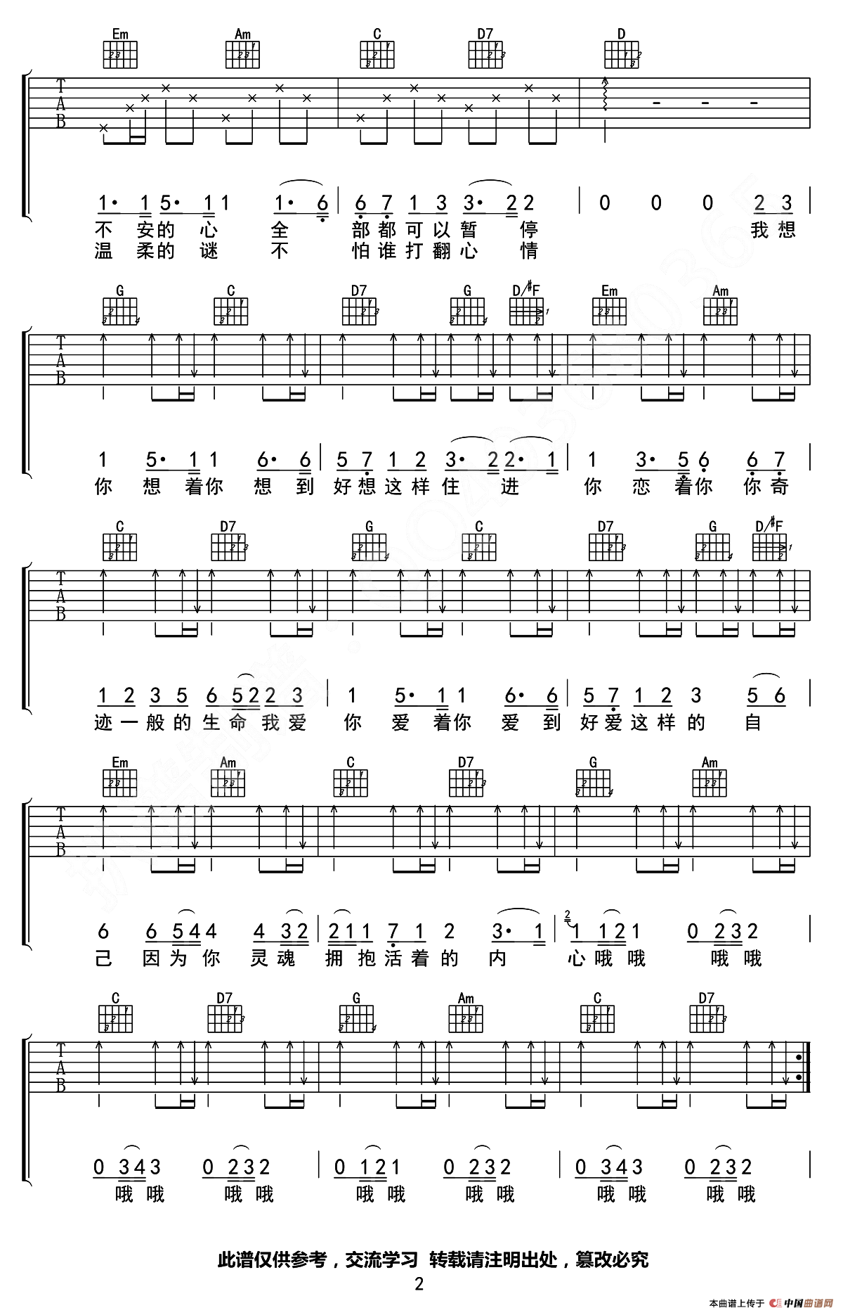 G调高清弹唱谱
