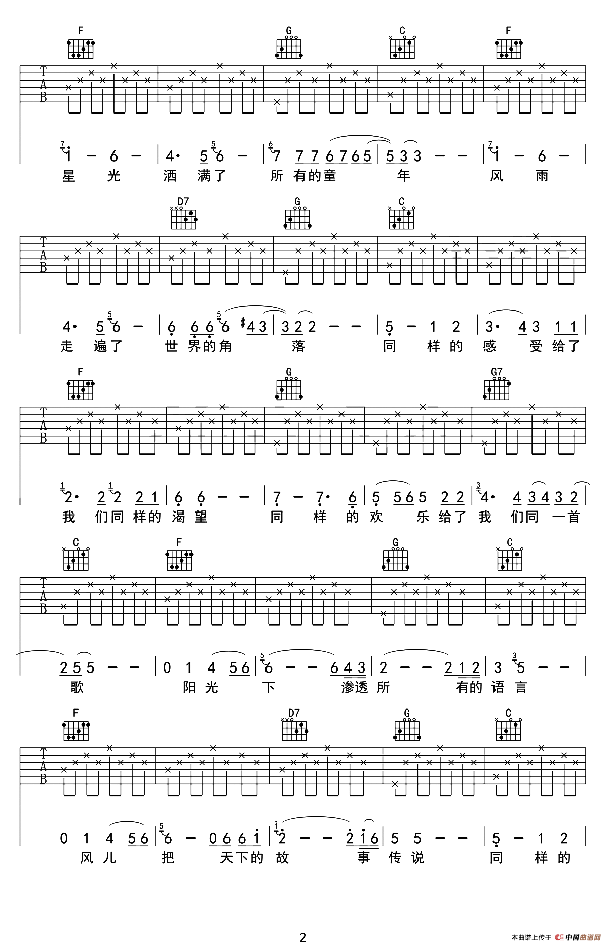 关于《同一首歌》曲谱的评论