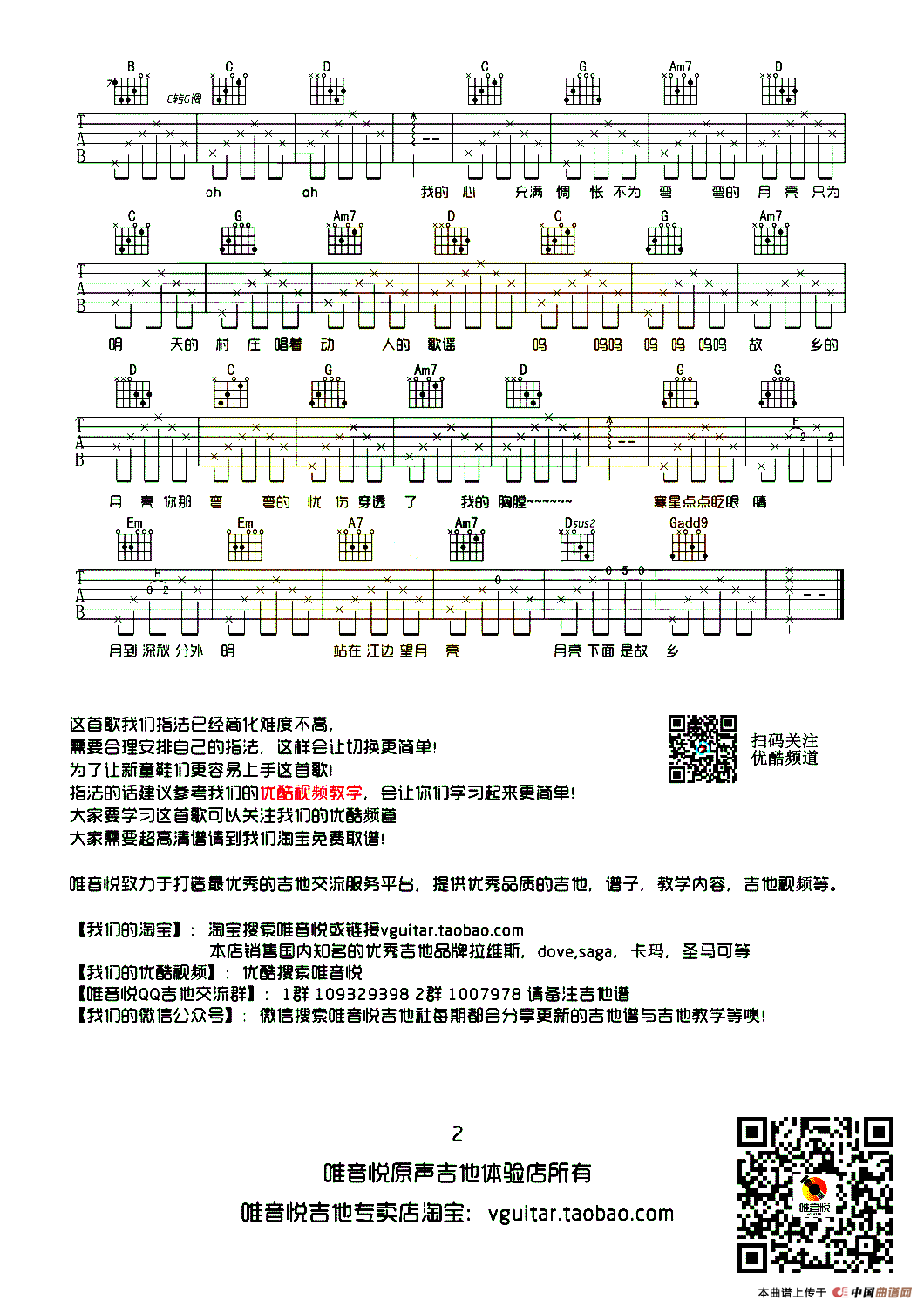 月亮粑粑吉他谱 赵雷 我是歌手 E调原版编配