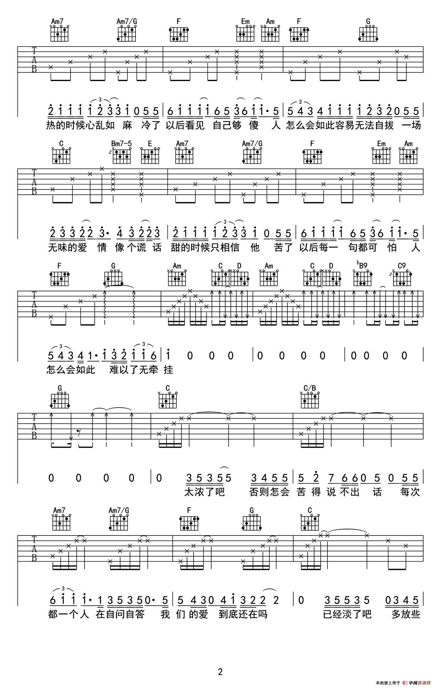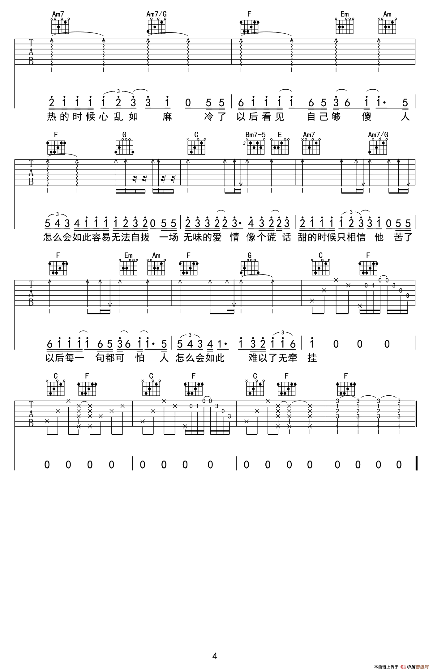 C调高清弹唱谱,牧马人乐器出品。