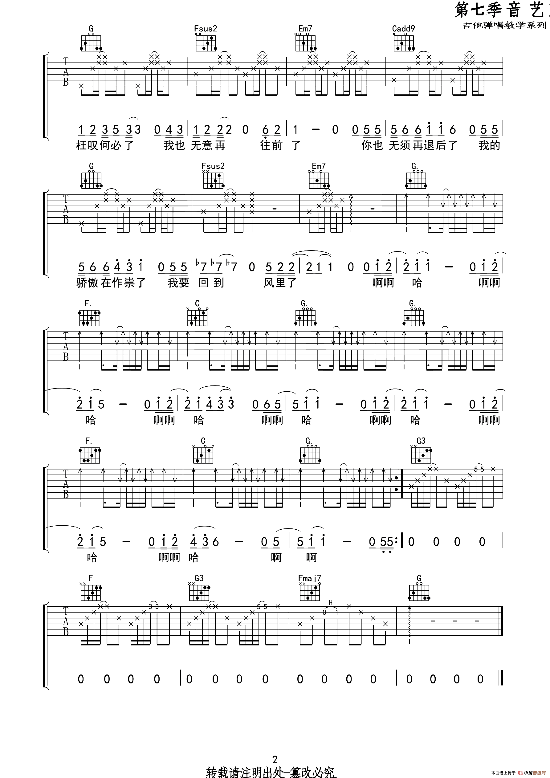 G调高清弹唱谱