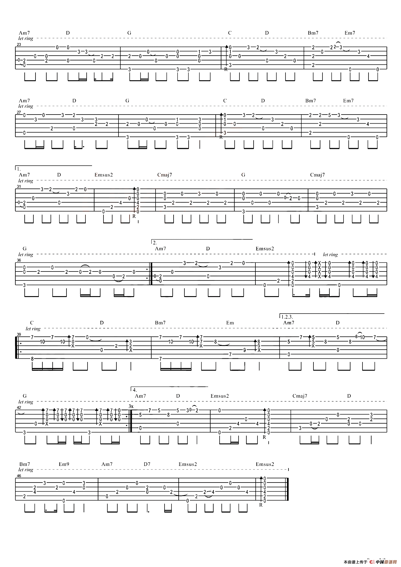 风去云不回(《战狼2》推广主题曲、指弹吉他谱 )