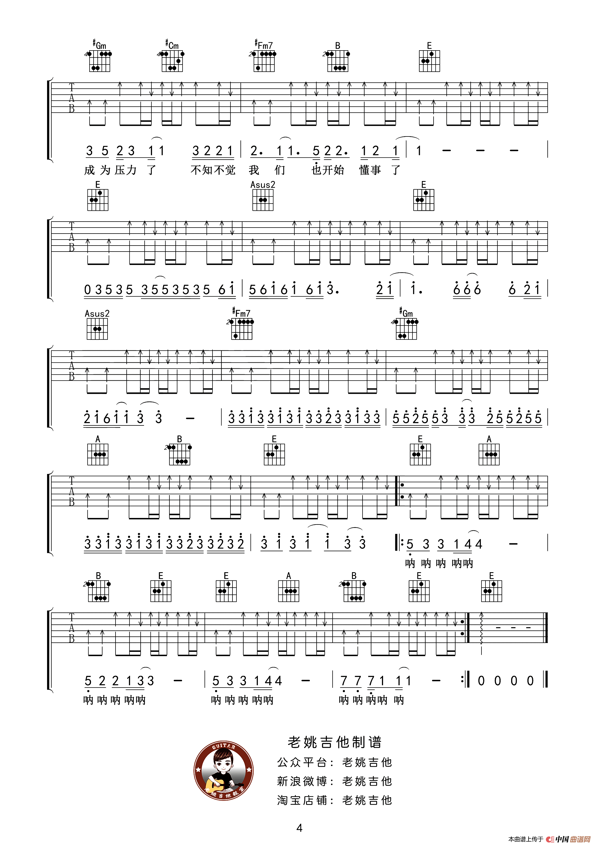 作曲:齐一词曲、老姚吉他编配 来源:转自《17吉他网》 上传:车里子