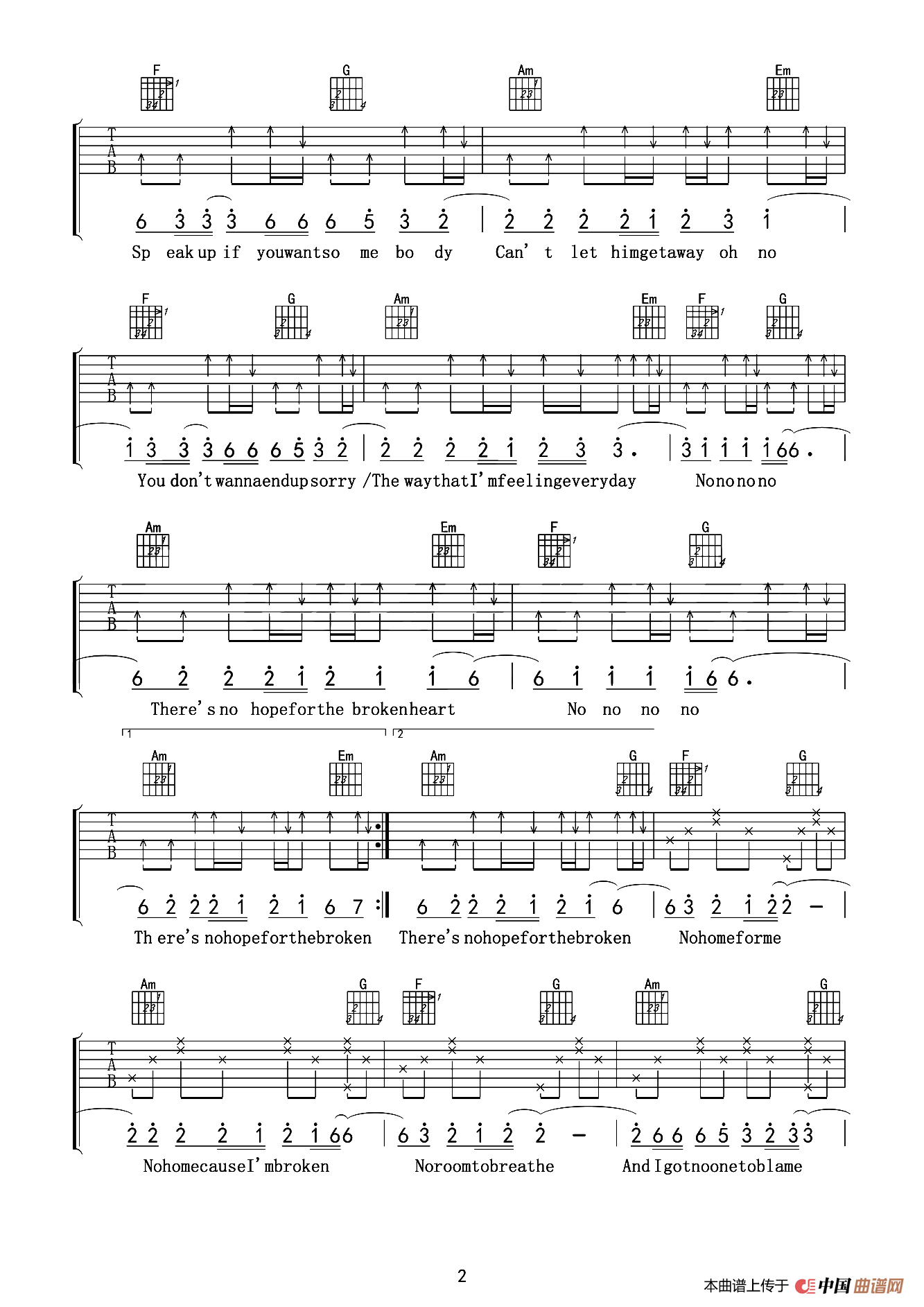 抖音 olly mars《That girl》吉他谱 C调原版编配